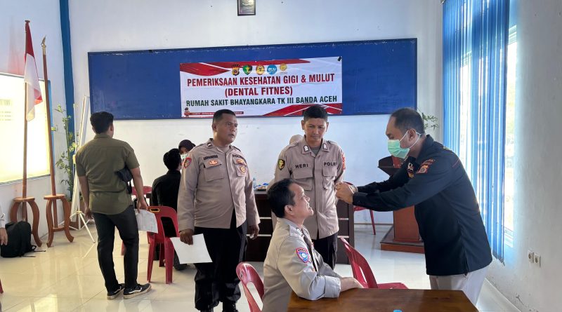 Calang – Dalam rangka menjaga kesehatan anggota kepolisian, personel Polres Aceh Jaya mengikuti kegiatan pemeriksaan kesehatan gigi dan mulut atau dental fitness yang dilaksanakan oleh Tim Medis Rumah Sakit Bhayangkara TK III Banda Aceh, bertempat di Aula Satpas SIM Satlantas Polres Aceh Jaya, Selasa (26/8/2025).