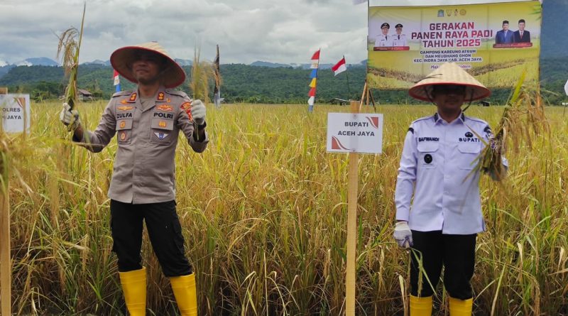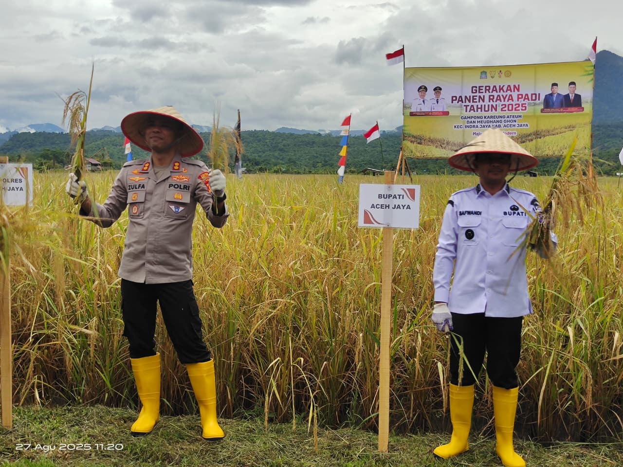 Kapolres Aceh Jaya Hadiri Gerakan Panen Raya Padi Tahun 2025 di Kecamatan Indra Jaya