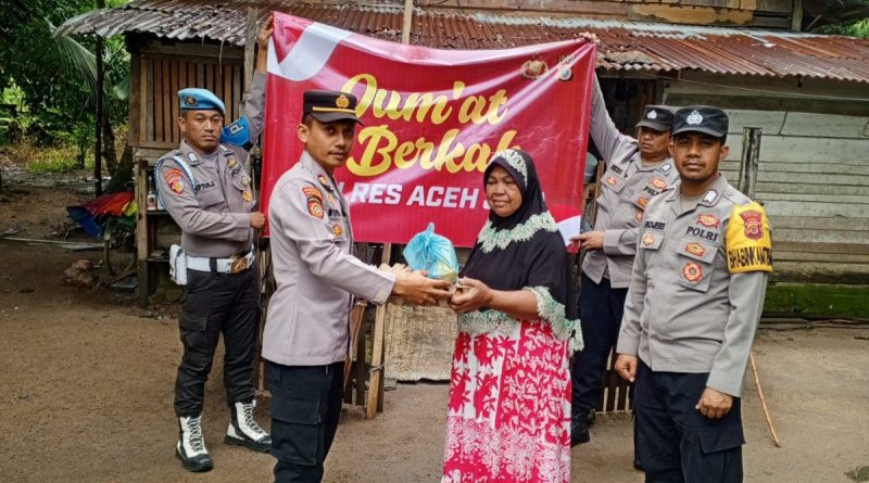 Calang – Polres Aceh Jaya kembali hadir di tengah masyarakat melalui program Jumat Berkah. Pada Jumat (29/8/2025) sore, jajaran kepolisian menyalurkan bantuan berupa telur dan minyak kepada sejumlah warga di Kecamatan Krueng Sabee, Kabupaten Aceh Jaya.