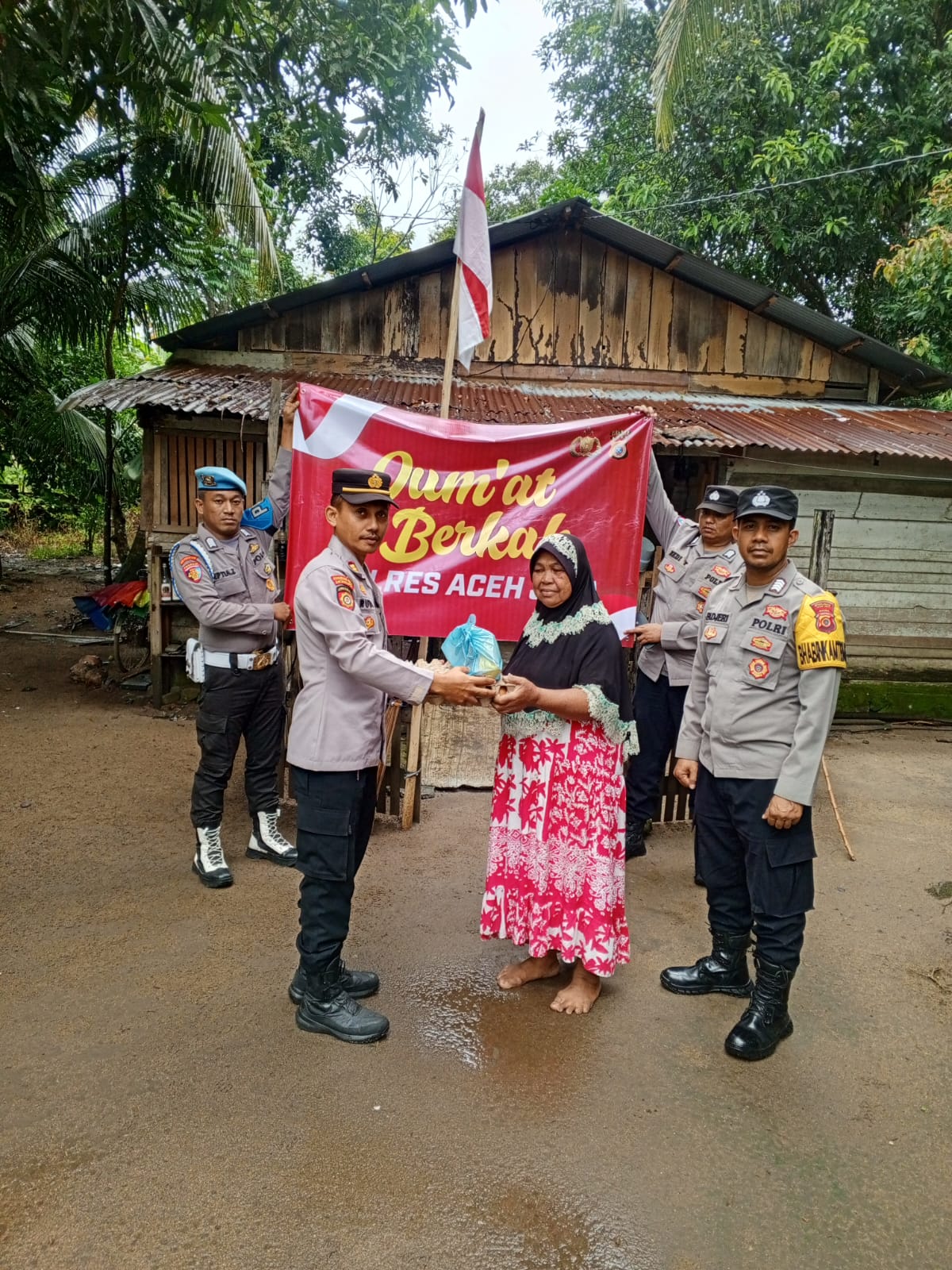 Jumat Berkah, Polres Aceh Jaya Salurkan Bantuan Telur dan Minyak untuk Warga Krueng Sabee