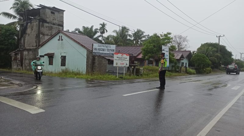Calang – Personel Polsek Teunom Polres Aceh Jaya melaksanakan giat Strong Point di kawasan rawan kemacetan dan keramaian lalu lintas pada Senin (01/09/2025) pagi. Kegiatan berlangsung sejak pukul 07.45 WIB hingga selesai, bertempat di Jalan Nasional Banda Aceh–Meulaboh, tepatnya di simpang masuk menuju komplek SMAN 1 Teunom, Desa Tanoh Manyang, Kecamatan Teunom, Kabupaten Aceh Jaya.