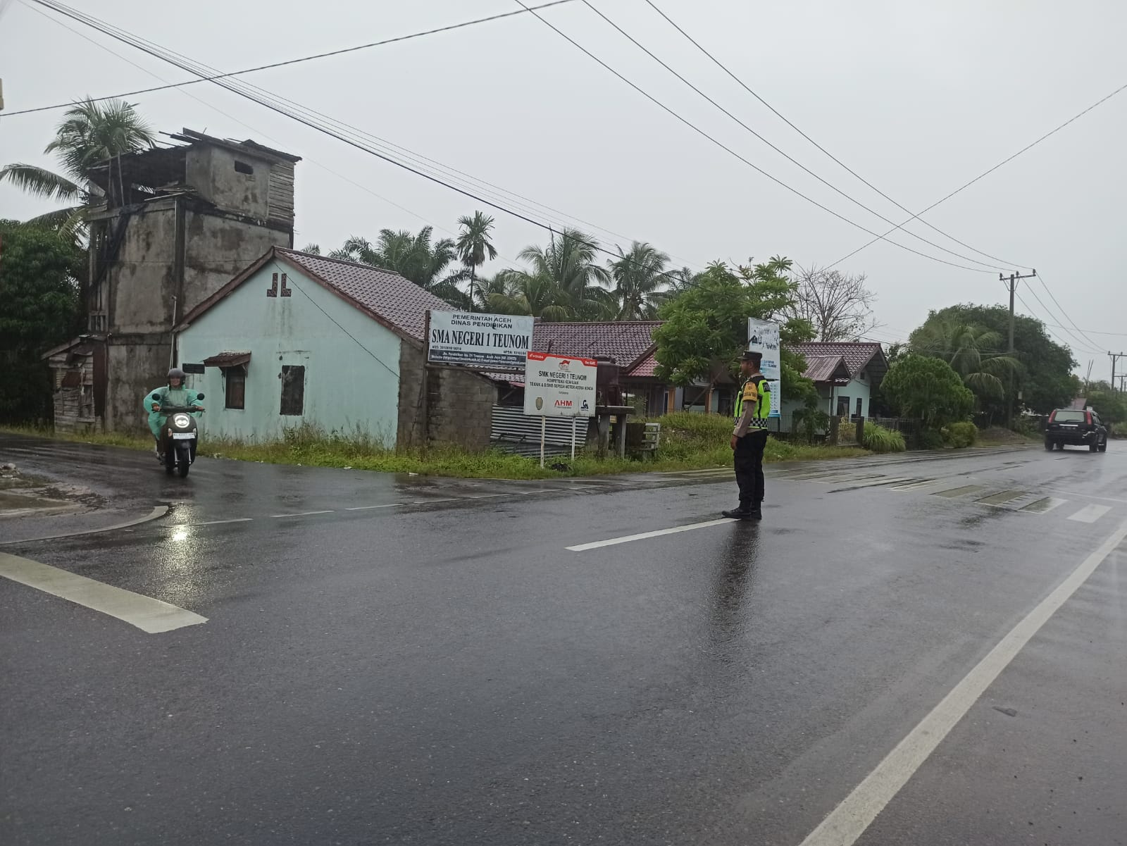 Personel Polsek Teunom Laksanakan Giat Strong Point di Depan SMAN 1 Teunom
