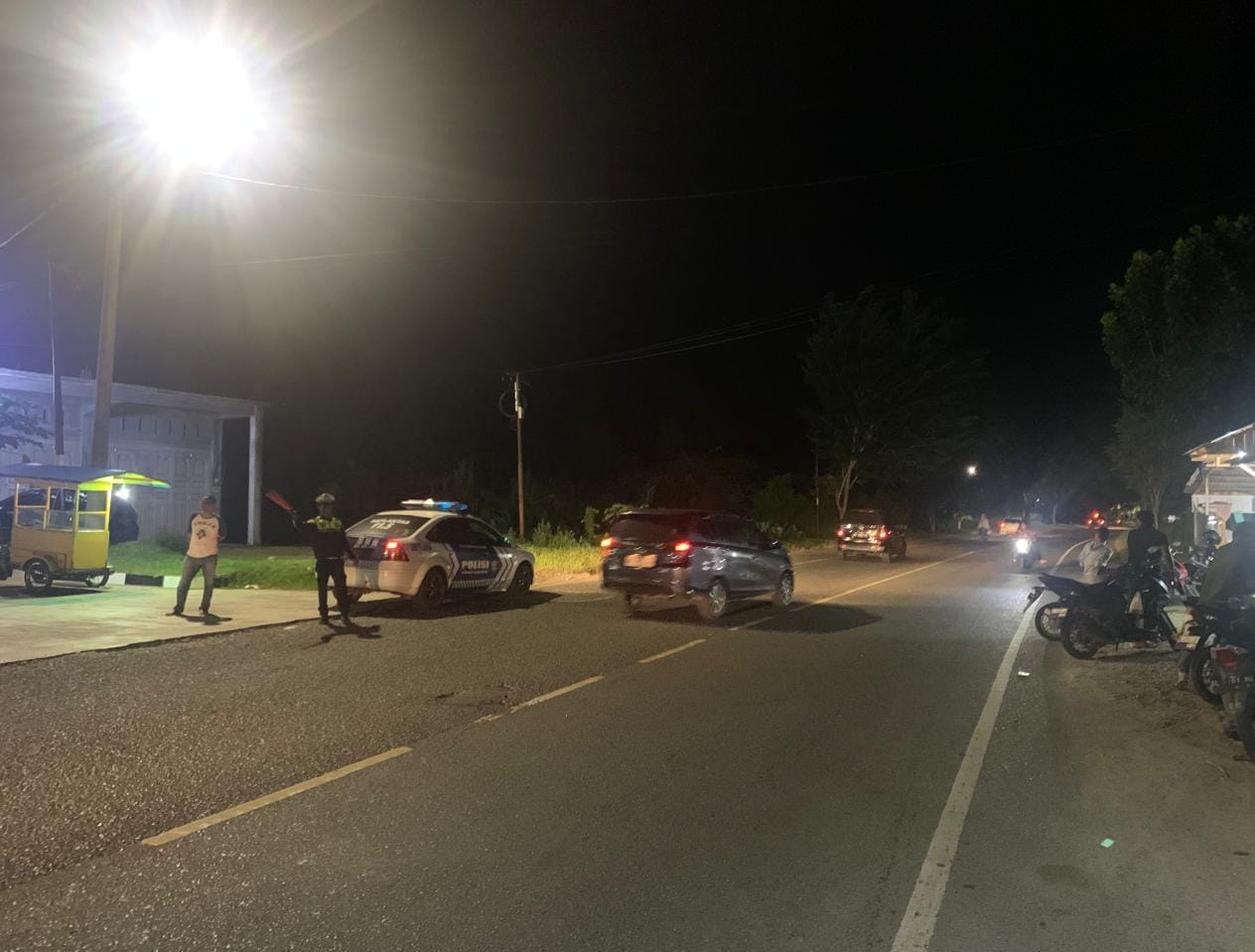Calang – Guna mewujudkan keamanan, keselamatan, ketertiban, dan kelancaran lalu lintas (Kamtibcarlantas), Satuan Lalu Lintas (Satlantas) Polres Aceh Jaya melaksanakan patroli rutin di jalur rawan kecelakaan, tepatnya di Jalan Lintas Banda Aceh–Meulaboh, Desa Keutapang, Kecamatan Krueng Sabee, Kabupaten Aceh Jaya, pada Jum’at malam (05/09/2025) sekira pukul 21.30 WIB.
