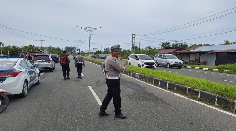 Calang – Satuan Lalu Lintas (Satlantas) Polres Aceh Jaya melaksanakan kegiatan pengaturan lalu lintas dalam rangka mendukung kegiatan Penanaman Pohon Kelapa Serentak Se-Indonesia sekaligus audiensi bersama Menteri Imigrasi dan Pemasyarakatan, pada Selasa (9/9/2025) pagi di Jalan Lintas Banda Aceh–Meulaboh, Desa Ketapang, Kecamatan Krueng Sabee, Kabupaten Aceh Jaya.