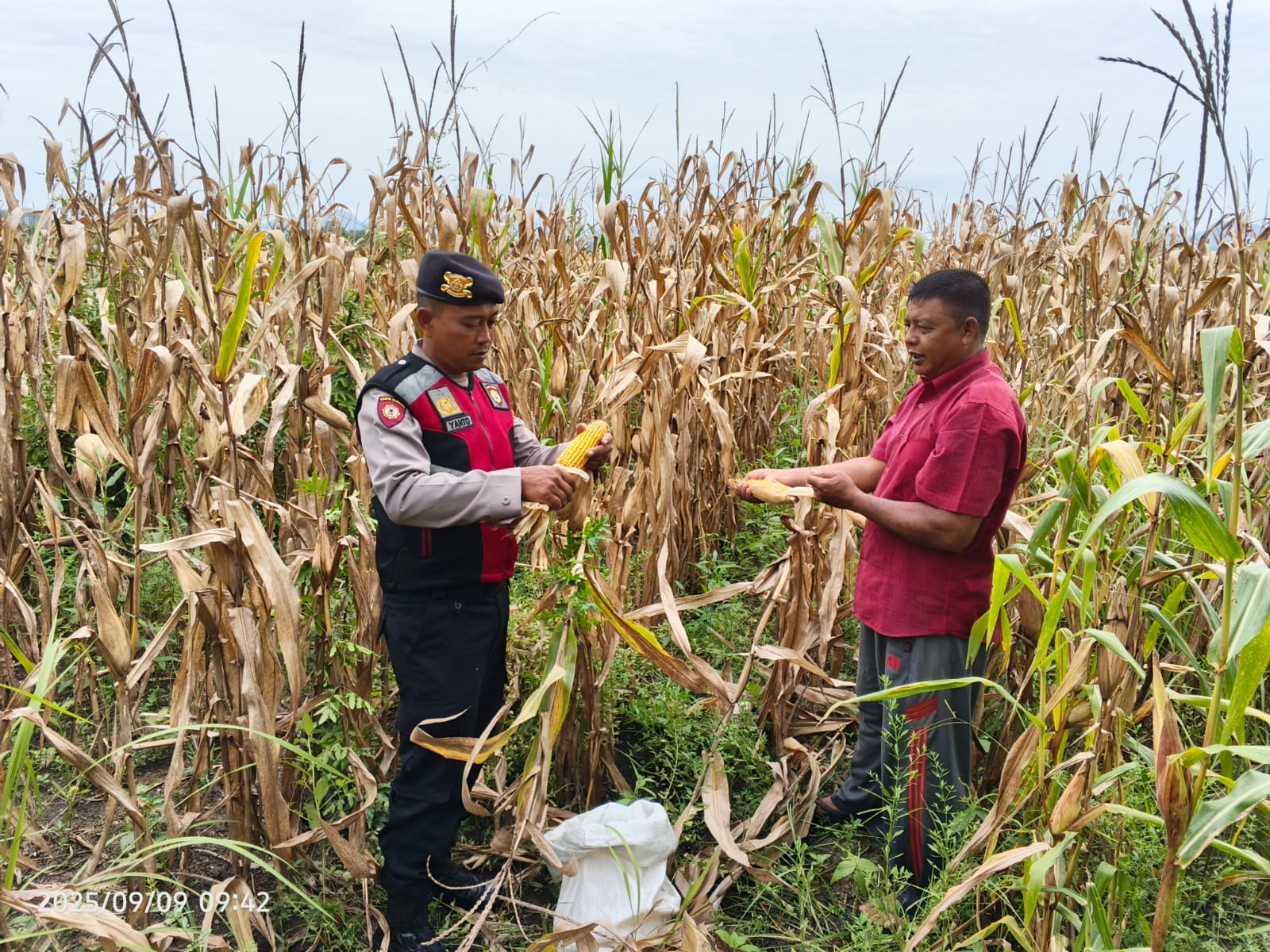 Dalam kesempatan tersebut, personel Polsek turut melakukan pengecekan panen jagung di lahan seluas setengah hektare milik Kelompok Tani Kabong II. Kegiatan panen berjalan dengan lancar, aman, dan penuh keakraban.