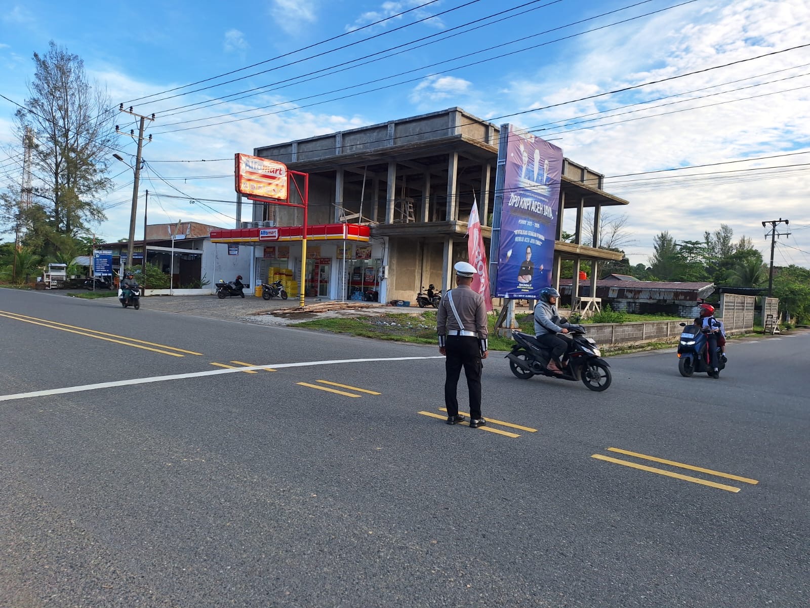Kegiatan ini dipimpin langsung oleh Kasat Lantas bersama personel Sat Lantas Polres Aceh Jaya dengan fokus memberikan pelayanan kepada masyarakat pengguna jalan, khususnya pada jam sibuk di pagi hari.