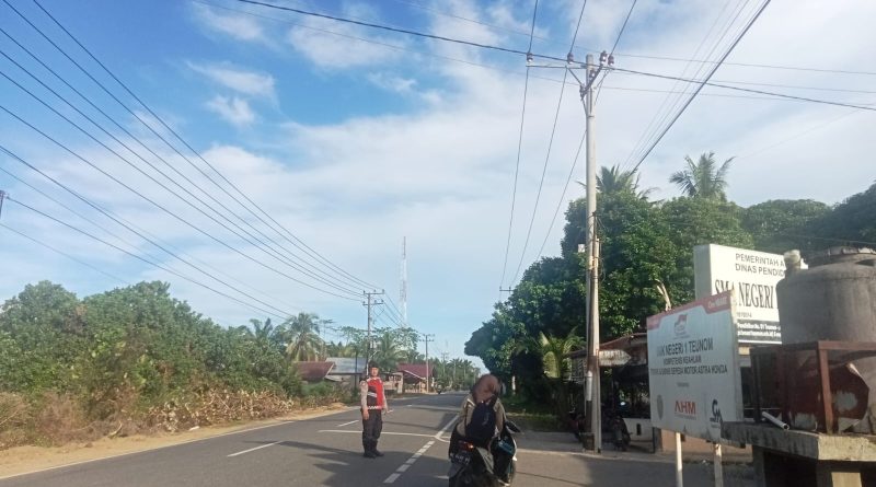 Calang, 20 September 2025 – Personel Polsek Teunom melaksanakan giat Strong Point pada Sabtu (20/9) pagi sekitar pukul 07.30 WIB hingga selesai, di Jalan Nasional Banda Aceh–Meulaboh tepatnya di simpang masuk menuju kompleks SMAN 1 Teunom, Desa Tanoh Manyang, Kecamatan Teunom, Kabupaten Aceh Jaya.
