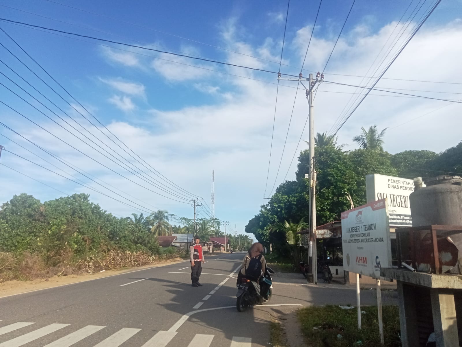PERSONEL POLSEK TEUNOM LAKSANAKAN STRONG POINT UNTUK CEGAH LAKA LANTAS DI SEKOLAHAN