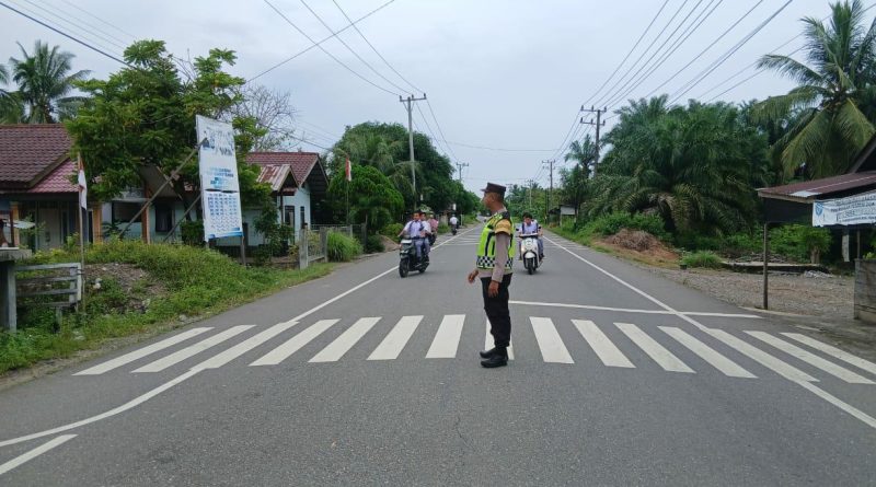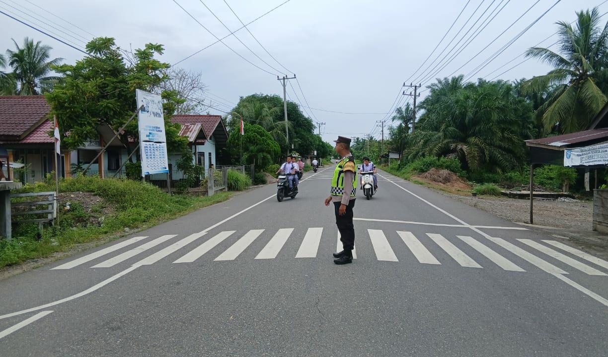Personel Polsek Teunom Laksanakan Giat Strong Point di Simpang Sekolah SMAN 1 Teunom