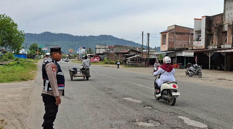 Calang – Dalam rangka menciptakan situasi lalu lintas yang aman dan kondusif, personel Polsek Jaya Polres Aceh Jaya melaksanakan kegiatan Strong Point pagi pada Senin (6/10/2025) sekira pukul 07.30 WIB di Jalan Banda Aceh–Calang, tepatnya di Desa Leupe, Kecamatan Jaya, Kabupaten Aceh Jaya.