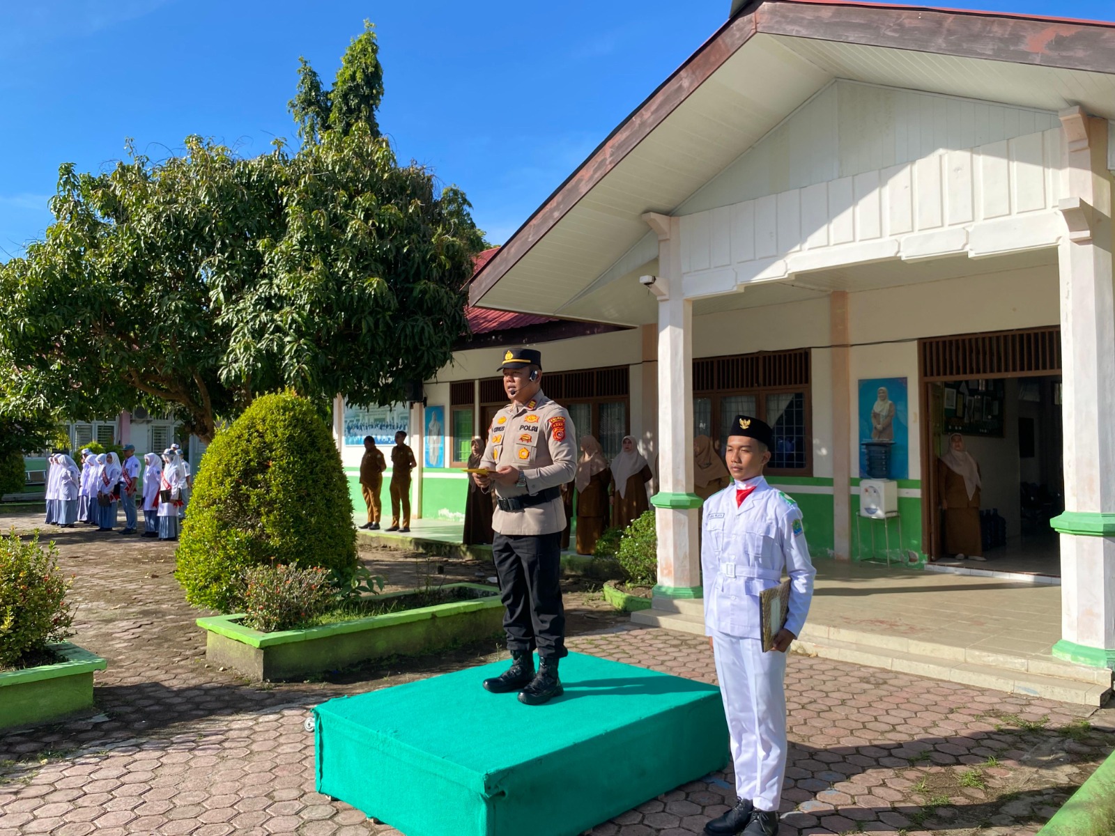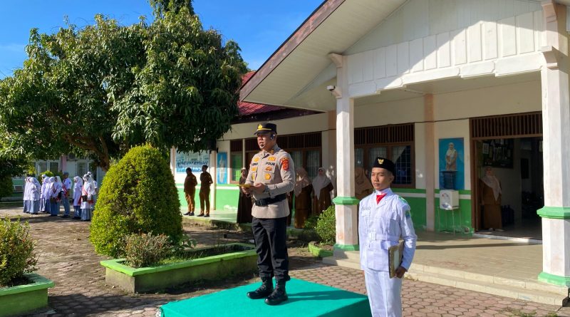 Calang — Dalam rangka melaksanakan program unggulan Polres Aceh Jaya “Peulisi Sajan Sikula (PSS)”, Kabag SDM Polres Aceh Jaya AKP Muchtar Chalis, S.Pd.I bertindak sebagai Inspektur Upacara di SMA Negeri 1 Calang, Desa Gampong Blang, Kecamatan Krueng Sabee, Kabupaten Aceh Jaya, pada Senin (13/10/2025) pukul 08.00 WIB.