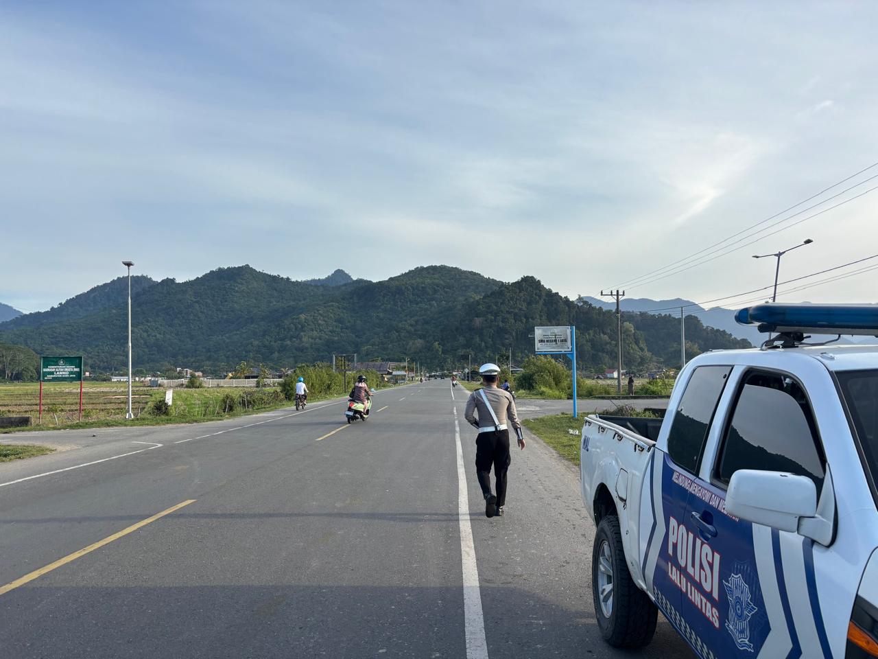 Satlantas Polres Aceh Jaya Laksanakan Gatur Pagi di Titik Rawan Laka dan Kemacetan untuk Wujudkan Kamseltibcarlantas
