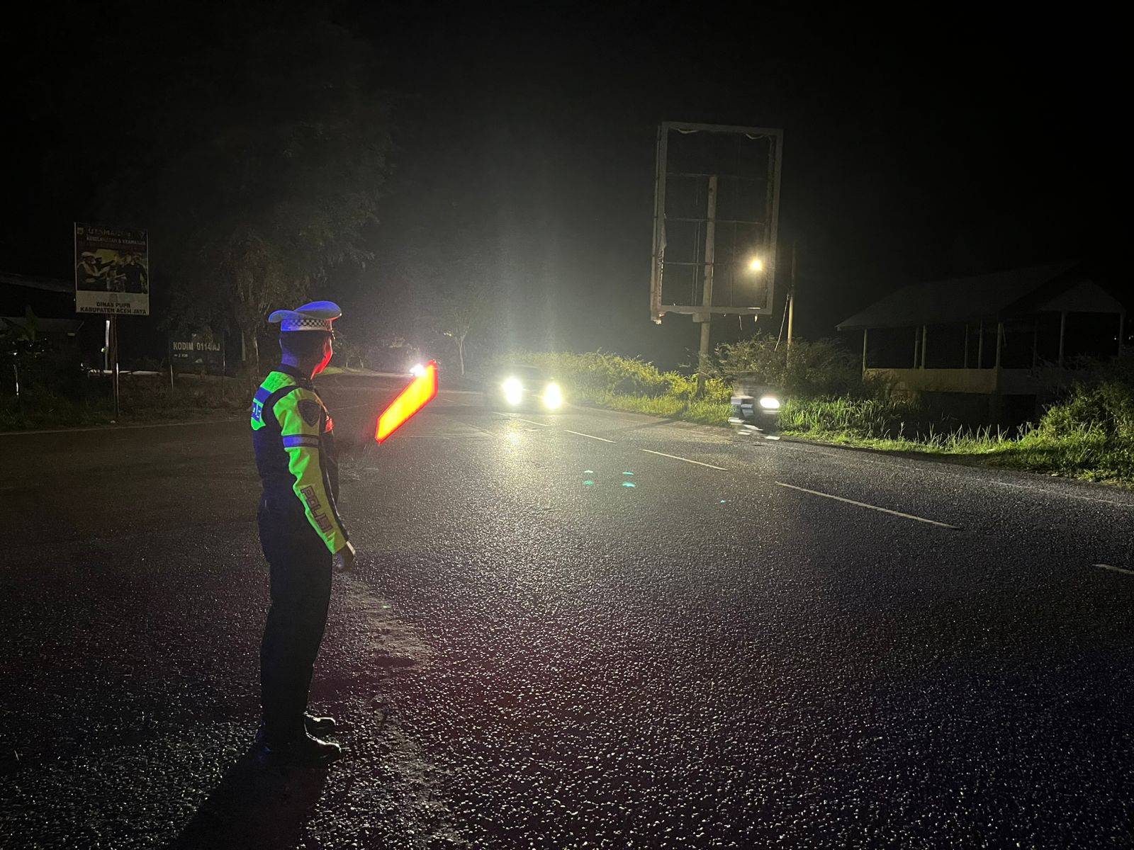 Calang, Sabtu Malam (01/11/2025) – Satuan Lalu Lintas (Sat Lantas) Polres Aceh Jaya melaksanakan kegiatan pengaturan arus lalu lintas di wilayah hukum Polres Aceh Jaya sebagai upaya antisipasi terhadap pelanggaran lalu lintas dan potensi terjadinya kecelakaan (Laka Lantas), guna menciptakan Keamanan, Keselamatan, Ketertiban, dan Kelancaran Lalu Lintas (Kamtibcarlantas).