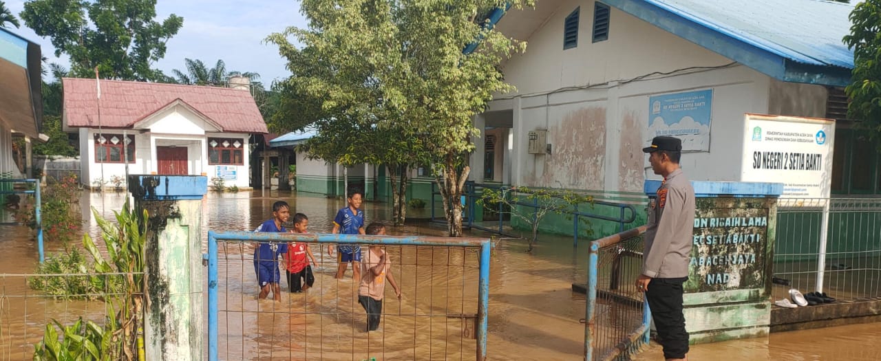 “Untuk sementara, warga Desa Lhok Bot yang rumahnya terdampak tidak perlu mengungsi karena air sudah mulai surut. Namun kegiatan belajar mengajar di SDN 2 Setia Bakti belum bisa dilaksanakan,” ujar Kapolsek Setia Bakti.
