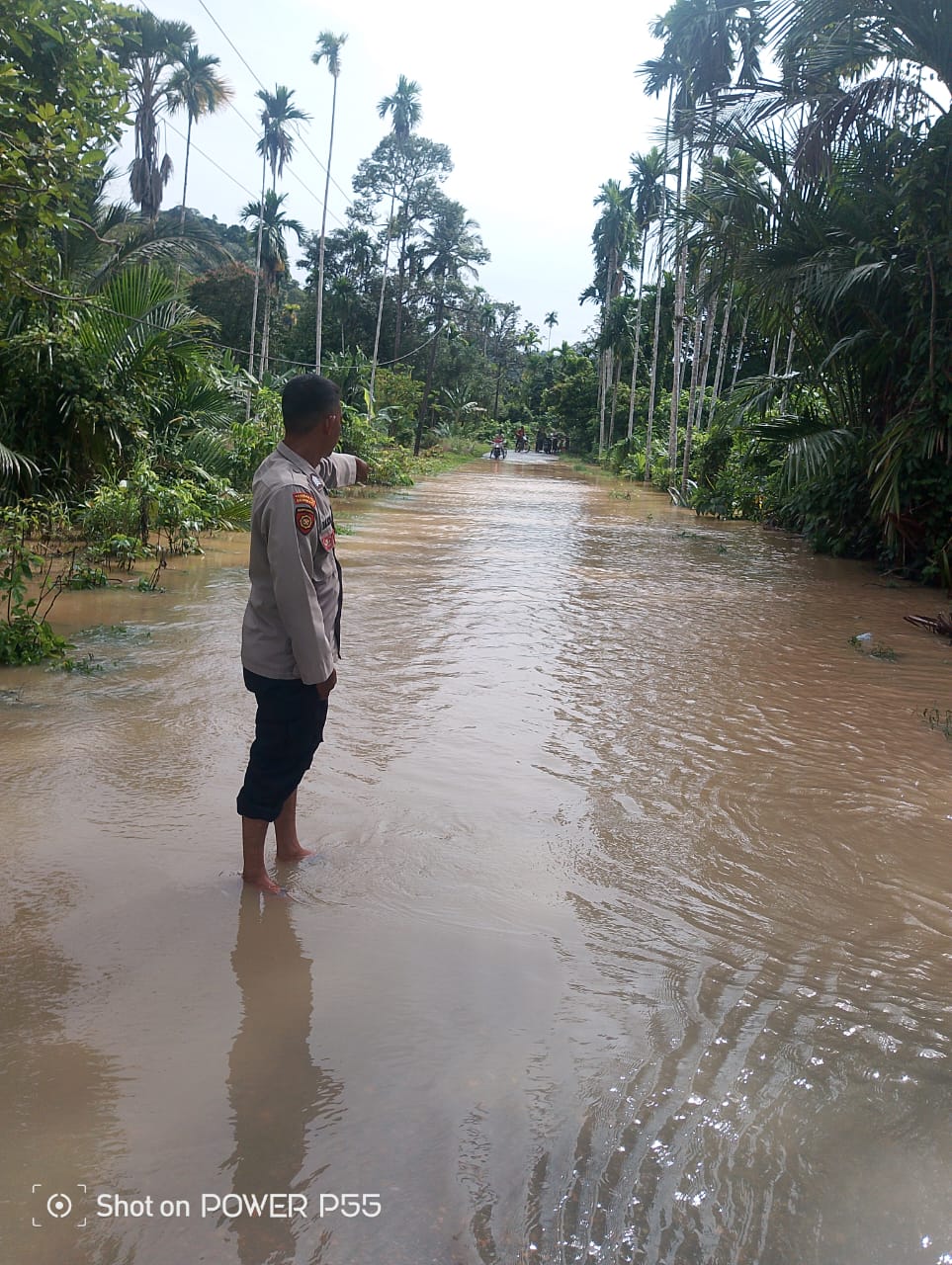 Polsek Krueng Sabee Lakukan Monitoring Banjir Akibat Intensitas Hujan Tinggi di Wilayah Kecamatan Krueng Sabee