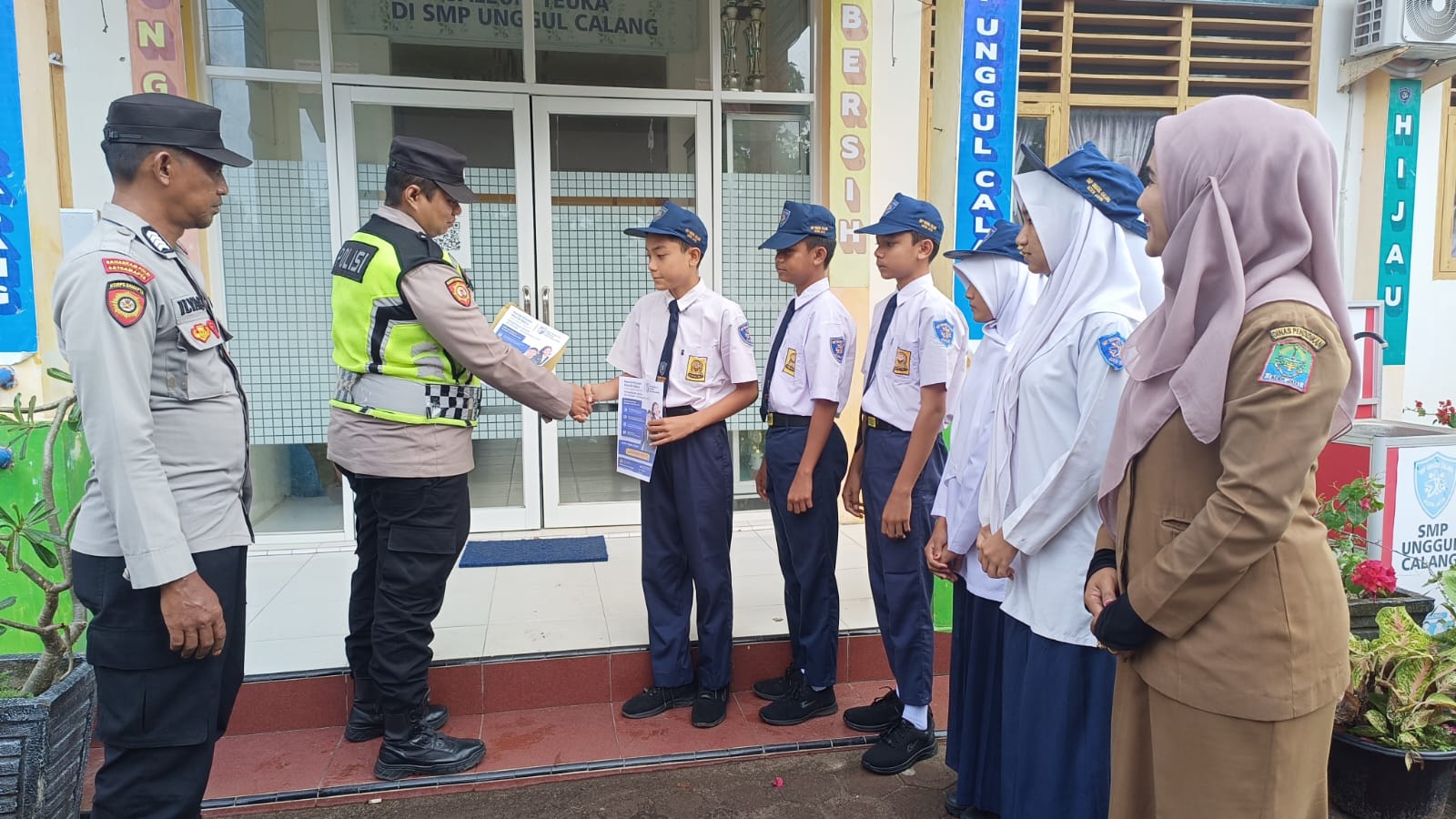 Calang – Dalam rangka memperkenalkan sekaligus menyosialisasikan Penerimaan Peserta Didik Baru (PPDB) SMA Kemala Taruna Bhayangkara Tahun Ajaran 2026–2027, personel Polsek Krueng Sabee melaksanakan kegiatan pembagian brosur kepada para siswa SMP Unggul Negeri Calang yang berlokasi di Desa Dayah Baroe, Kecamatan Krueng Sabee, Kabupaten Aceh Jaya, pada Senin (10/11/2025) sekira pukul 08.30 WIB.