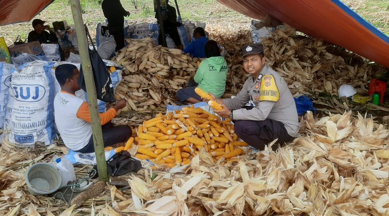 Bhabinkamtibmas Polsek Teunom Pantau Panen Jagung BUMG Desa Alue Krueng Dukung Program Ketahanan Pangan Nasional