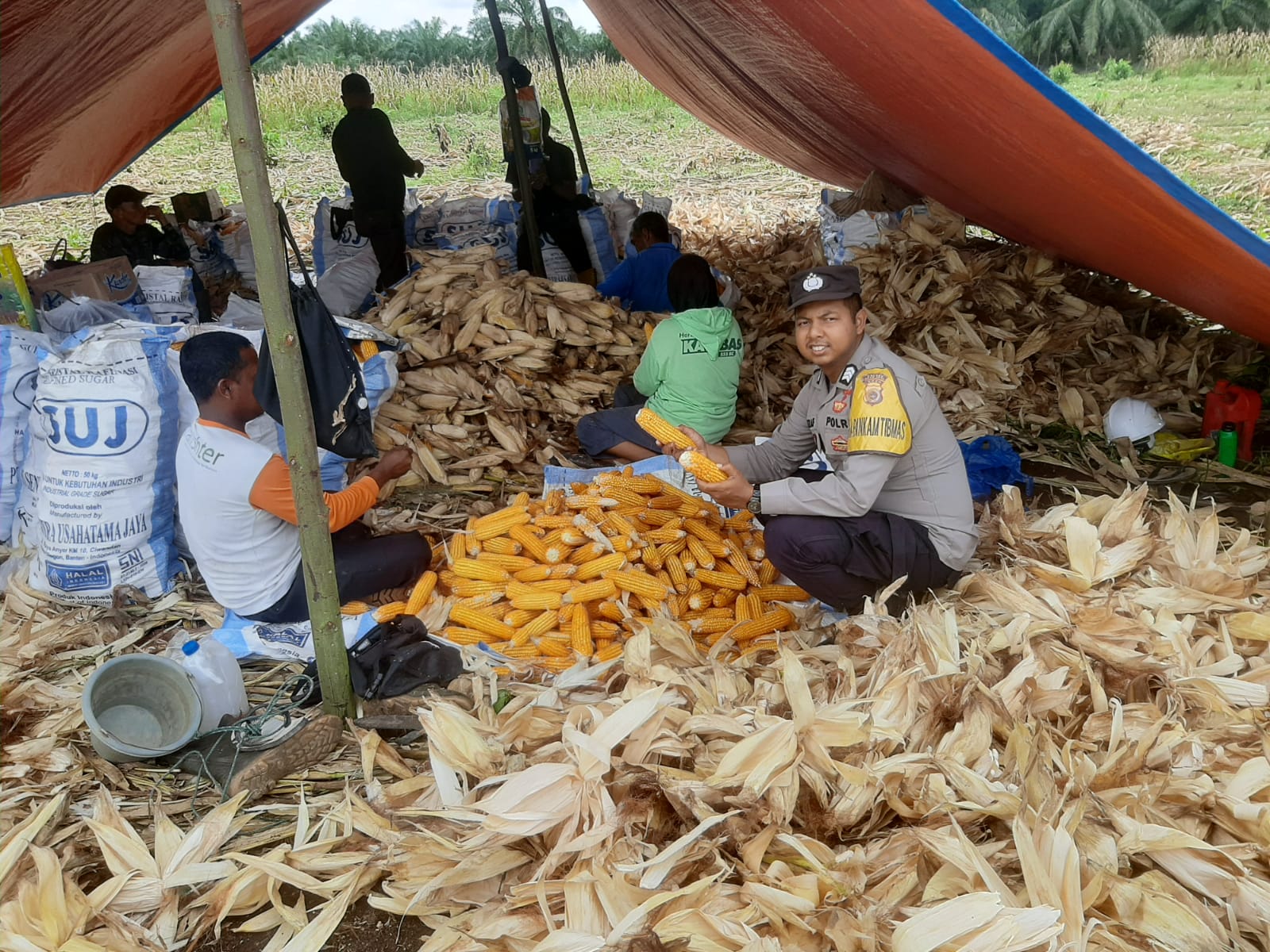 Calang – Dalam rangka mendukung program pemerintah di bidang ketahanan pangan, personel Polsek Teunom Polres Aceh Jaya melaksanakan kegiatan pemantauan panen jagung milik kelompok BUMG (Badan Usaha Milik Gampong) di Desa Alue Krueng, Kecamatan Pasie Raya, Kabupaten Aceh Jaya, pada Kamis (13/11/2025) sekira pukul 10.30 WIB.