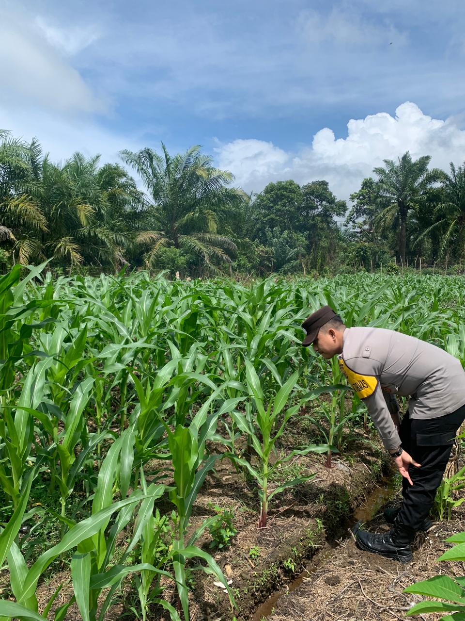 Personel Polsek Panga Lakukan Pemantauan Lahan Jagung Program Lahan Produktif di Desa Keude Panga