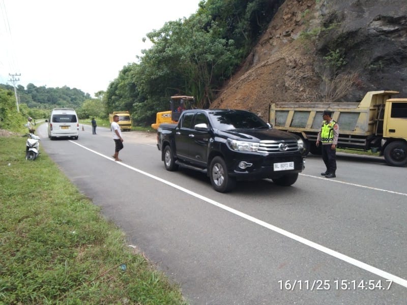 “Personel Polsek Sampoiniet bersama anggota Koramil 02/Sampoiniet langsung turun ke lokasi untuk melakukan pengamanan dan mengatur arus lalu lintas agar tidak terjadi kemacetan. Kami juga berkoordinasi dengan BPJN Aceh Jaya untuk percepatan pembersihan material longsor,” ujar Iptu Heru Setiawan.
