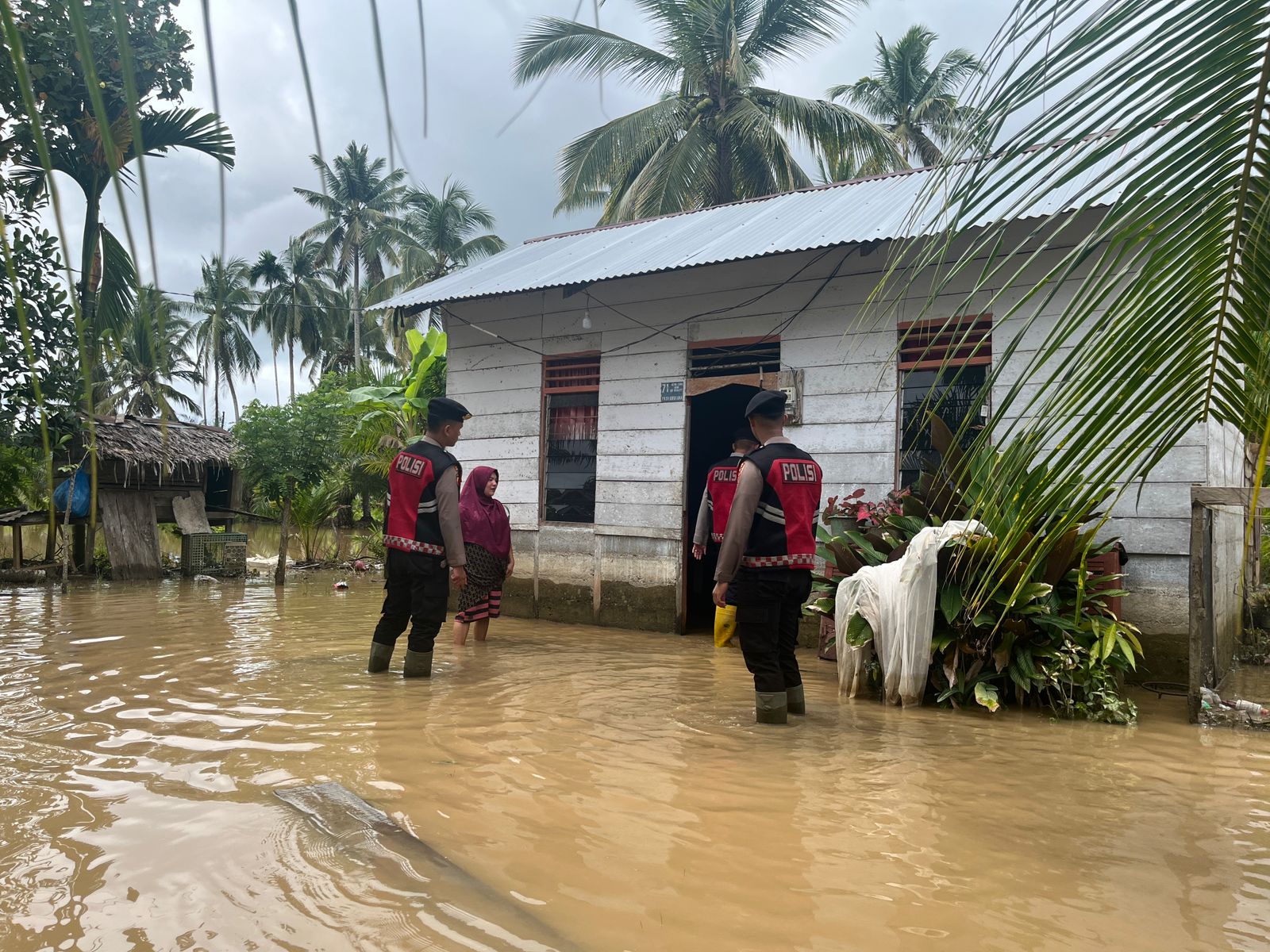 Patroli Ke Pemukiman Desa Terdampak Banjir, Sat Samapta Polres Aceh Jaya Tingkatkan Respons Kemanusiaan