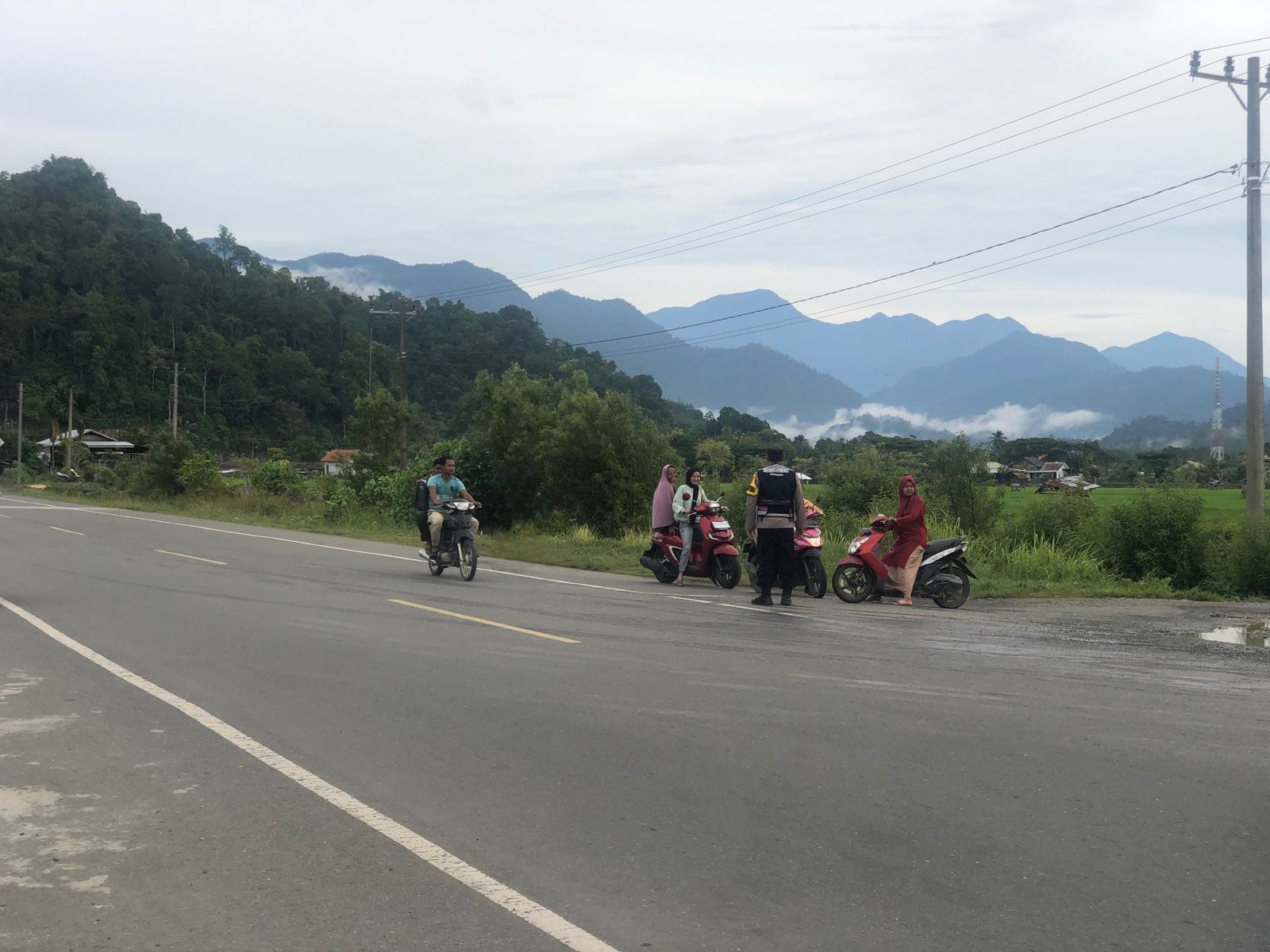 Personel Polsek Jaya Laksanakan Strong Point di Jalur Nasional Banda Aceh–Calang