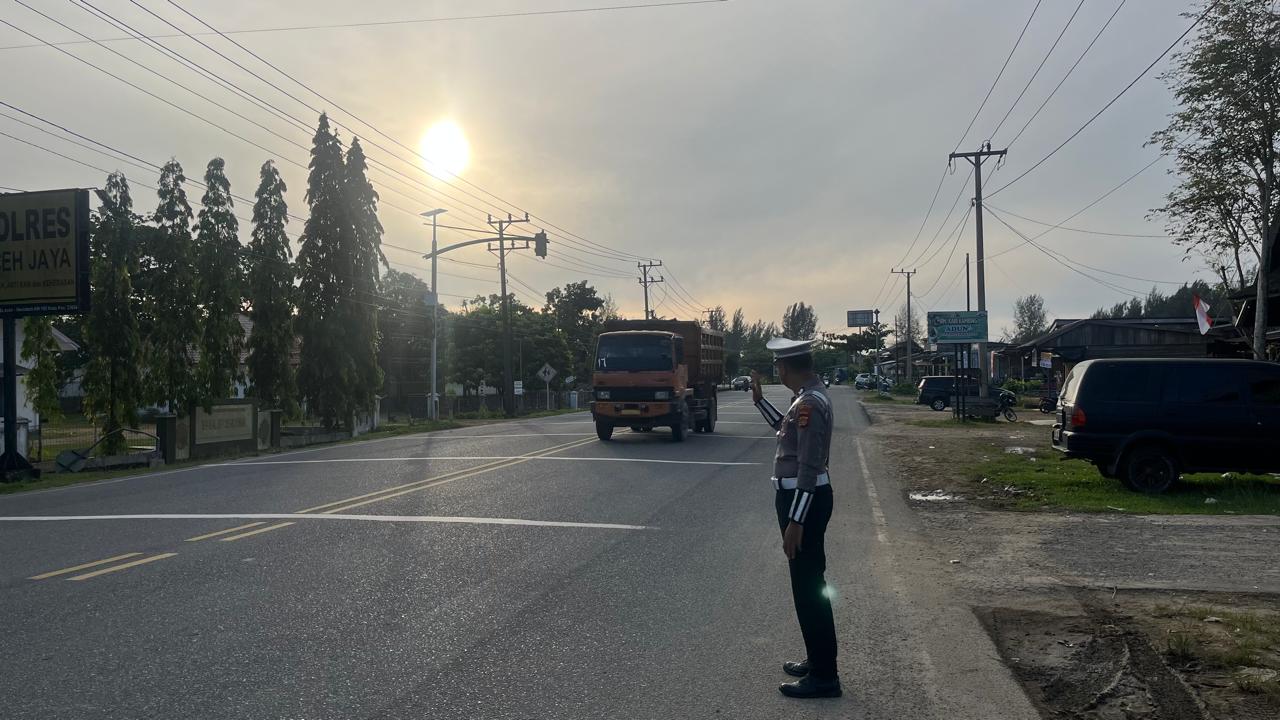 Calang – Dalam rangka mendukung pelaksanaan Operasi Zebra Seulawah 2025, Personel Satuan Lalu Lintas (Sat Lantas) Polres Aceh Jaya melaksanakan kegiatan Strong Point Pagi berupa pengaturan arus lalu lintas di sejumlah titik rawan kecelakaan dan rawan kemacetan pada Senin, 24 November 2025, mulai pukul 07.00 WIB hingga selesai.