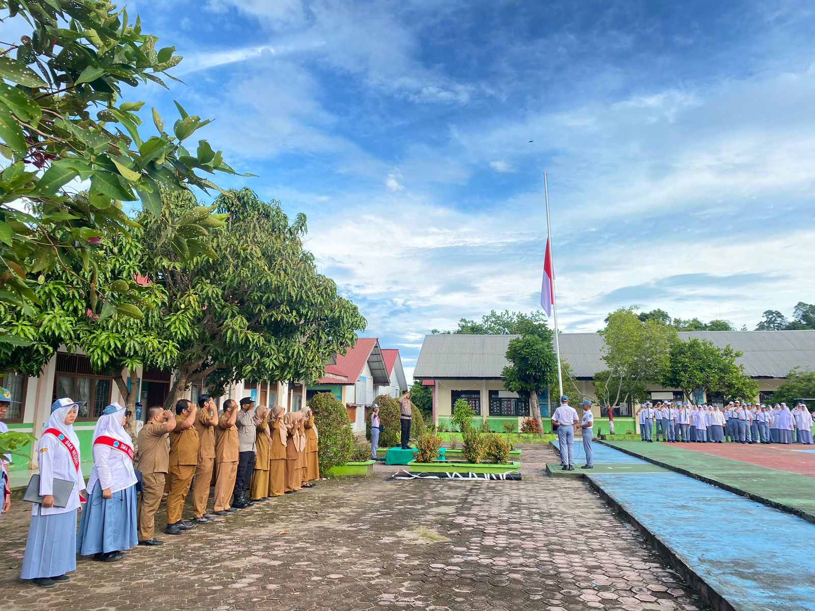 Upacara di halaman sekolah tersebut diikuti oleh: