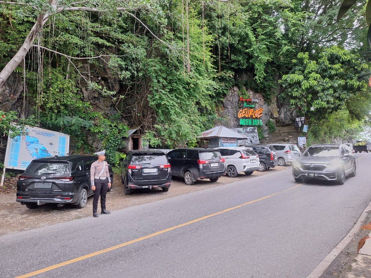 Sebanyak 2 personel Sat Lantas Polres Aceh Jaya dikerahkan untuk melakukan pemantauan jalur, pengaturan arus lalu lintas, serta memberikan himbauan langsung kepada pengguna jalan.