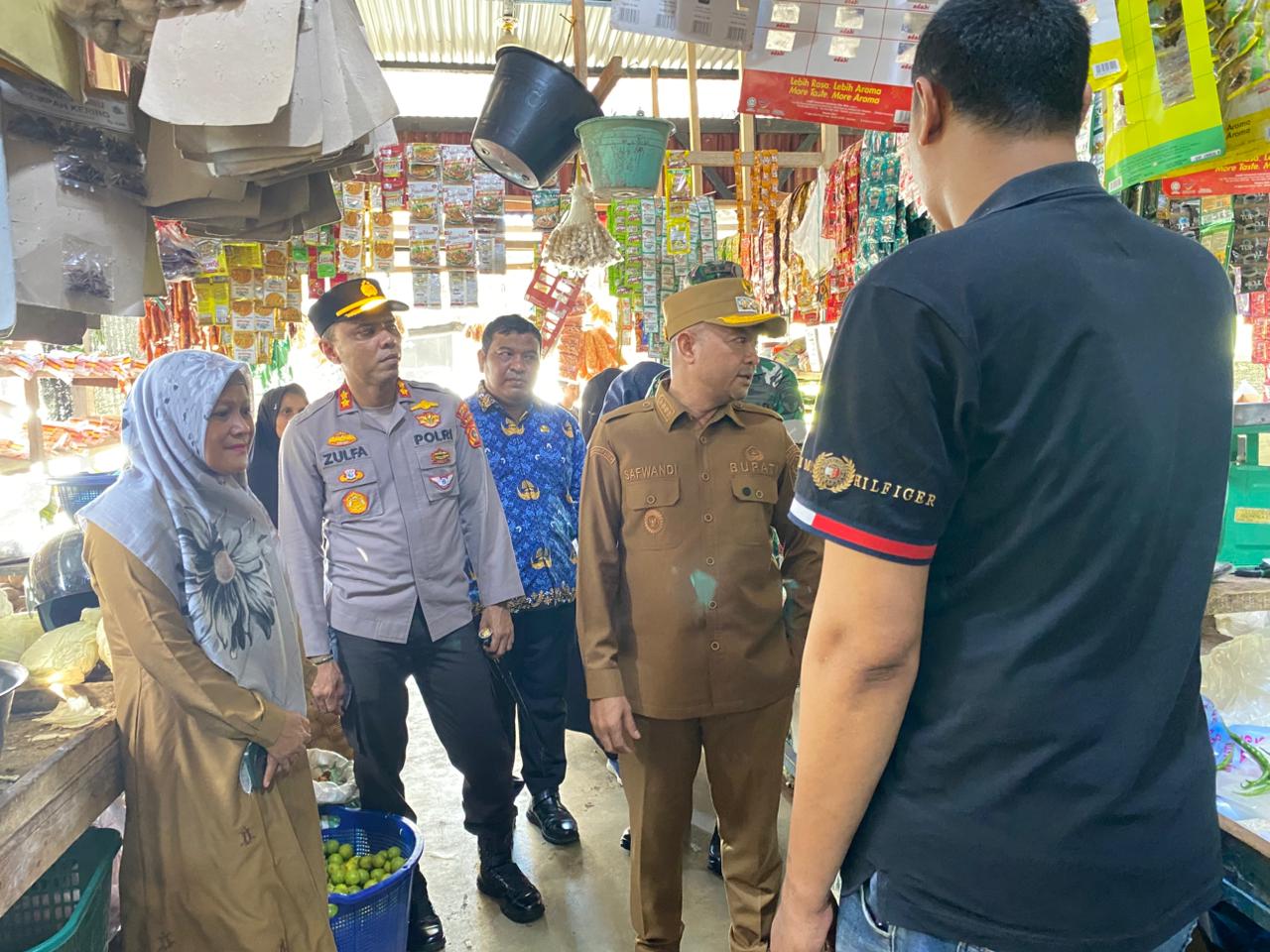 Calang — Dalam upaya menjaga stabilitas harga sekaligus memastikan ketersediaan bahan pokok pasca bencana alam yang melanda wilayah Aceh Jaya, Kapolres Aceh Jaya AKBP Zulfa Renaldo, S.I.K., M.Si., bersama unsur Forkopimda Aceh Jaya meninjau langsung kondisi pasar tradisional di Kecamatan Krueng Sabee, Kabupaten Aceh Jaya, pada Senin (1/12/2025) sekitar pukul 09.00 WIB.