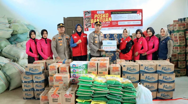 Selanjutnya, Kapolres Aceh Jaya AKBP Zulfa Renaldo, S.I.K., M.Si. menyerahkan bantuan kemanusiaan kepada Pengurus PMI Kabupaten Aceh Jaya untuk selanjutnya disalurkan kepada warga yang terdampak banjir di wilayah Provinsi Aceh. Bantuan tersebut terdiri dari beras, mie instan, air mineral, biskuit, roti, dan pop mie dalam jumlah yang mencukupi untuk membantu kebutuhan masyarakat korban bencana.