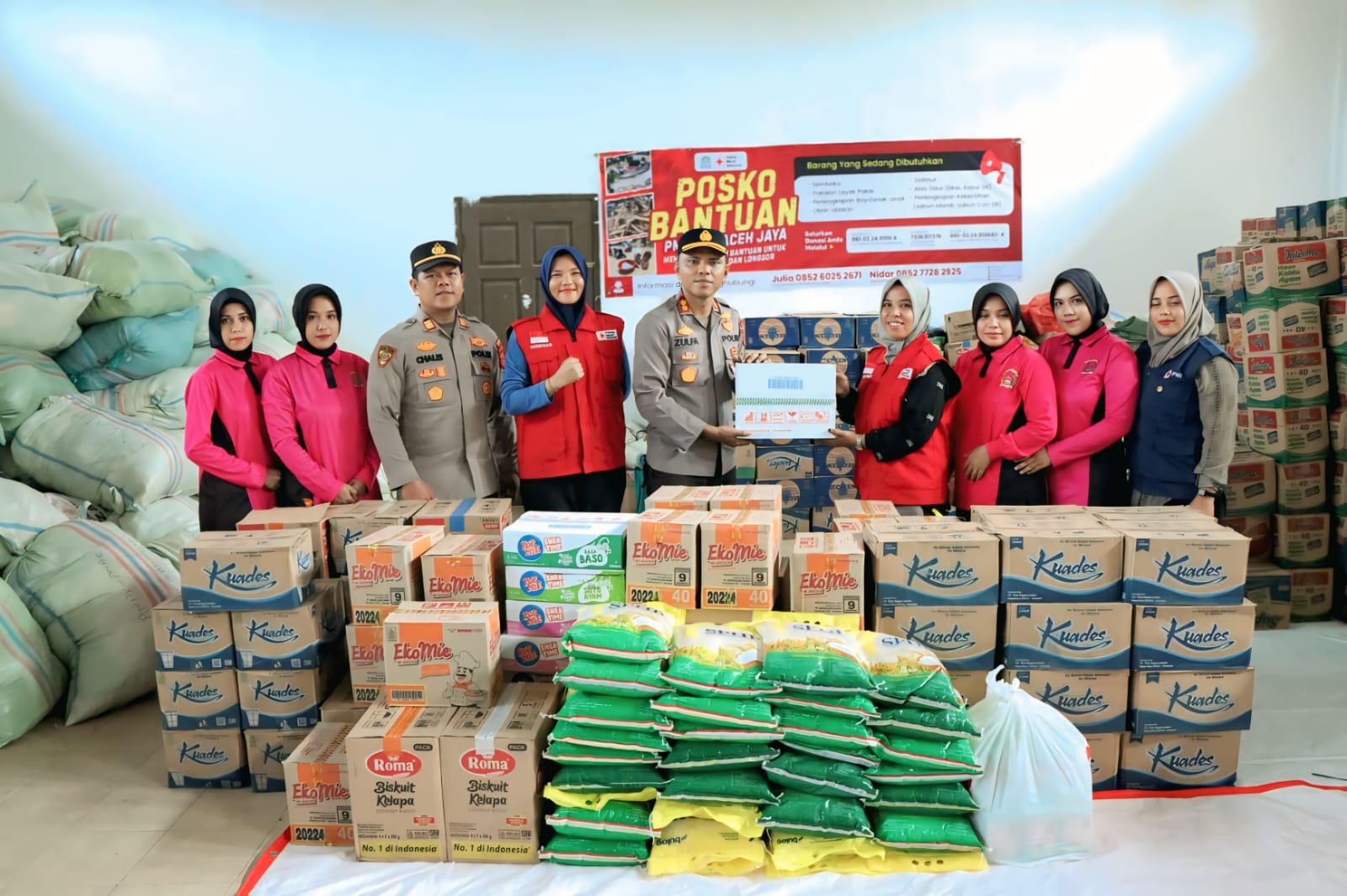 Selanjutnya, Kapolres Aceh Jaya AKBP Zulfa Renaldo, S.I.K., M.Si. menyerahkan bantuan kemanusiaan kepada Pengurus PMI Kabupaten Aceh Jaya untuk selanjutnya disalurkan kepada warga yang terdampak banjir di wilayah Provinsi Aceh. Bantuan tersebut terdiri dari beras, mie instan, air mineral, biskuit, roti, dan pop mie dalam jumlah yang mencukupi untuk membantu kebutuhan masyarakat korban bencana.