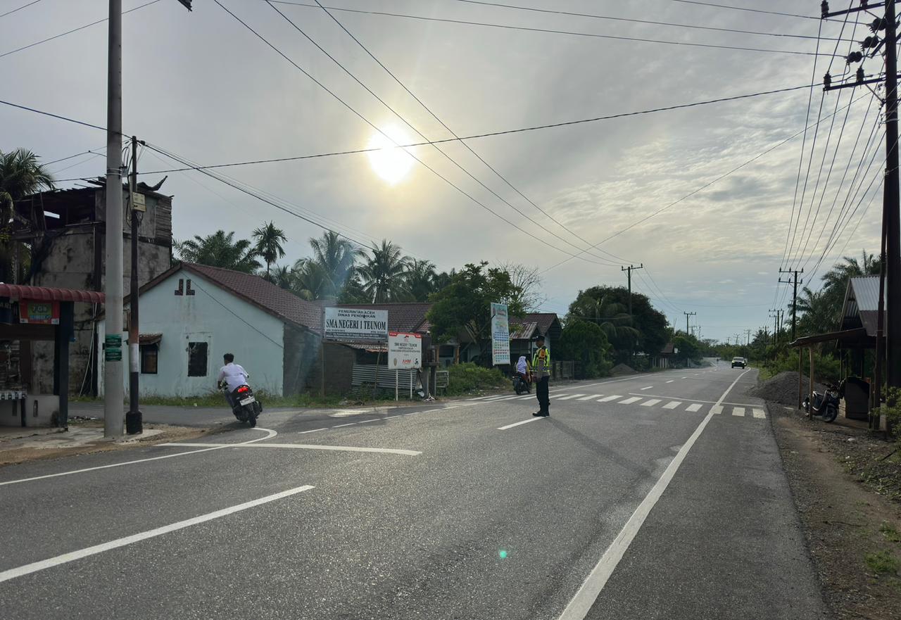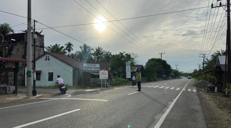 Calang – Dalam rangka meningkatkan keselamatan berlalu lintas serta memberikan rasa aman kepada masyarakat, khususnya para pelajar, Personel Polsek Teunom Polres Aceh Jaya melaksanakan kegiatan Strong Point pagi di wilayah Kecamatan Teunom.