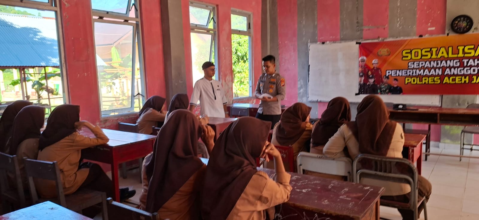 Kanit Binmas dan Bhabinkamtibmas Polsek Jaya Sosialisasikan Penerimaan Polri di MAS Lamno