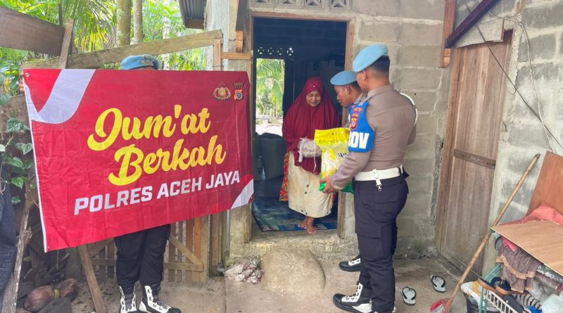 Calang – Sebagai bentuk kepedulian terhadap masyarakat kurang mampu, Polres Aceh Jaya kembali melaksanakan kegiatan sosial Penyaluran Bantuan Sosial (Bansos) Jumat Berkah kepada warga di wilayah hukum Polsek Krueng Sabee, Jumat (19/12/2025).