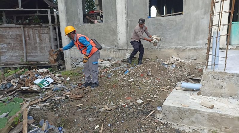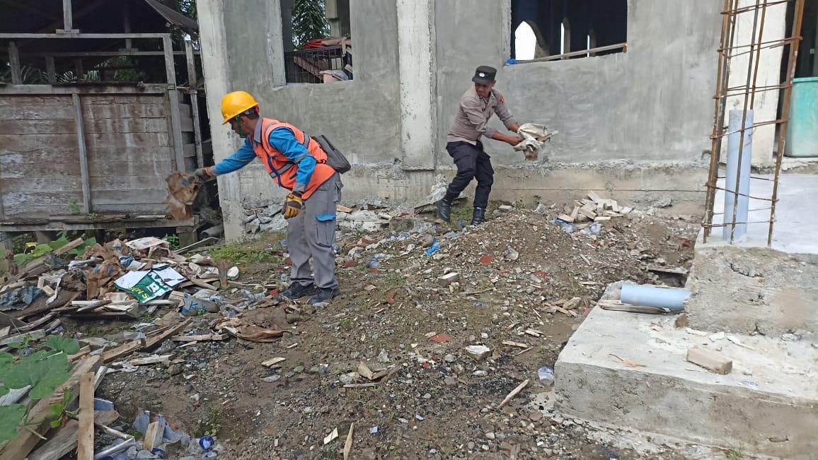 Calang – Sebagai bentuk kepedulian terhadap masyarakat terdampak bencana banjir, Polri bersama PLN dan masyarakat melaksanakan kegiatan bakti sosial berupa gotong royong membersihkan fasilitas umum di Desa Blang Baro, Kecamatan Teunom, Kabupaten Aceh Jaya.