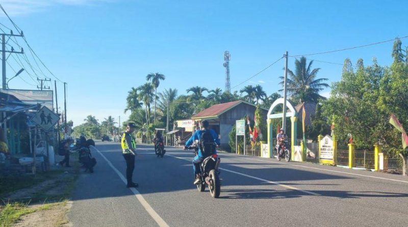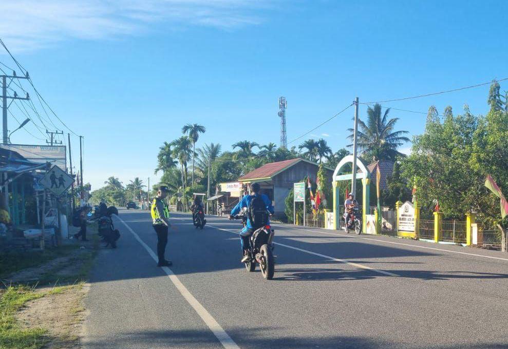Calang – Dalam rangka menciptakan keamanan, keselamatan, ketertiban, dan kelancaran lalu lintas (Kamseltibcarlantas), personel Polsek Panga Polres Aceh Jaya melaksanakan kegiatan Strong Point di wilayah hukumnya.