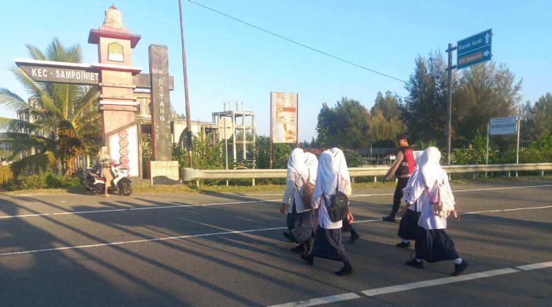Calang – Dalam rangka memberikan rasa aman dan nyaman kepada masyarakat serta menciptakan kelancaran arus lalu lintas pada jam sibuk pagi hari, personel Polsek Sampoiniet Polres Aceh Jaya melaksanakan kegiatan Strong Point di wilayah Kecamatan Sampoiniet, Kabupaten Aceh Jaya, Senin (12/1/2026).