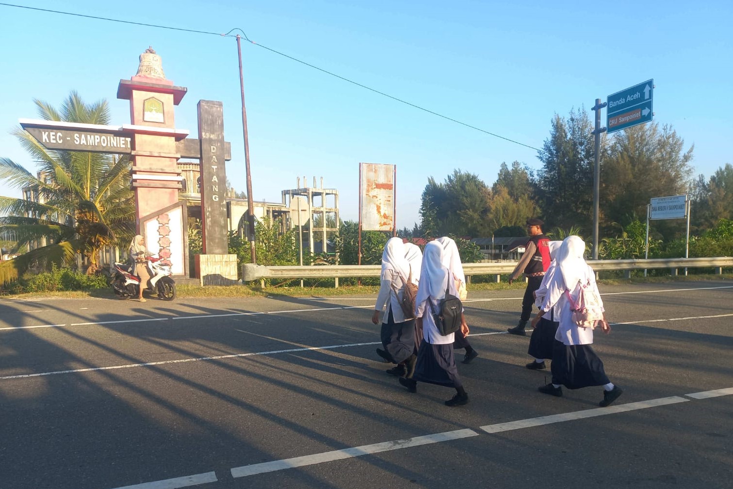 Adapun personel Polsek Sampoiniet yang terlibat dalam kegiatan ini yakni Bripka M. Romy dan Briptu Masykur. Keduanya melaksanakan pengaturan lalu lintas di sekitar persimpangan jalan dan area depan sekolah guna membantu kelancaran arus kendaraan serta memastikan keselamatan anak-anak sekolah dan masyarakat yang hendak menyeberang jalan.