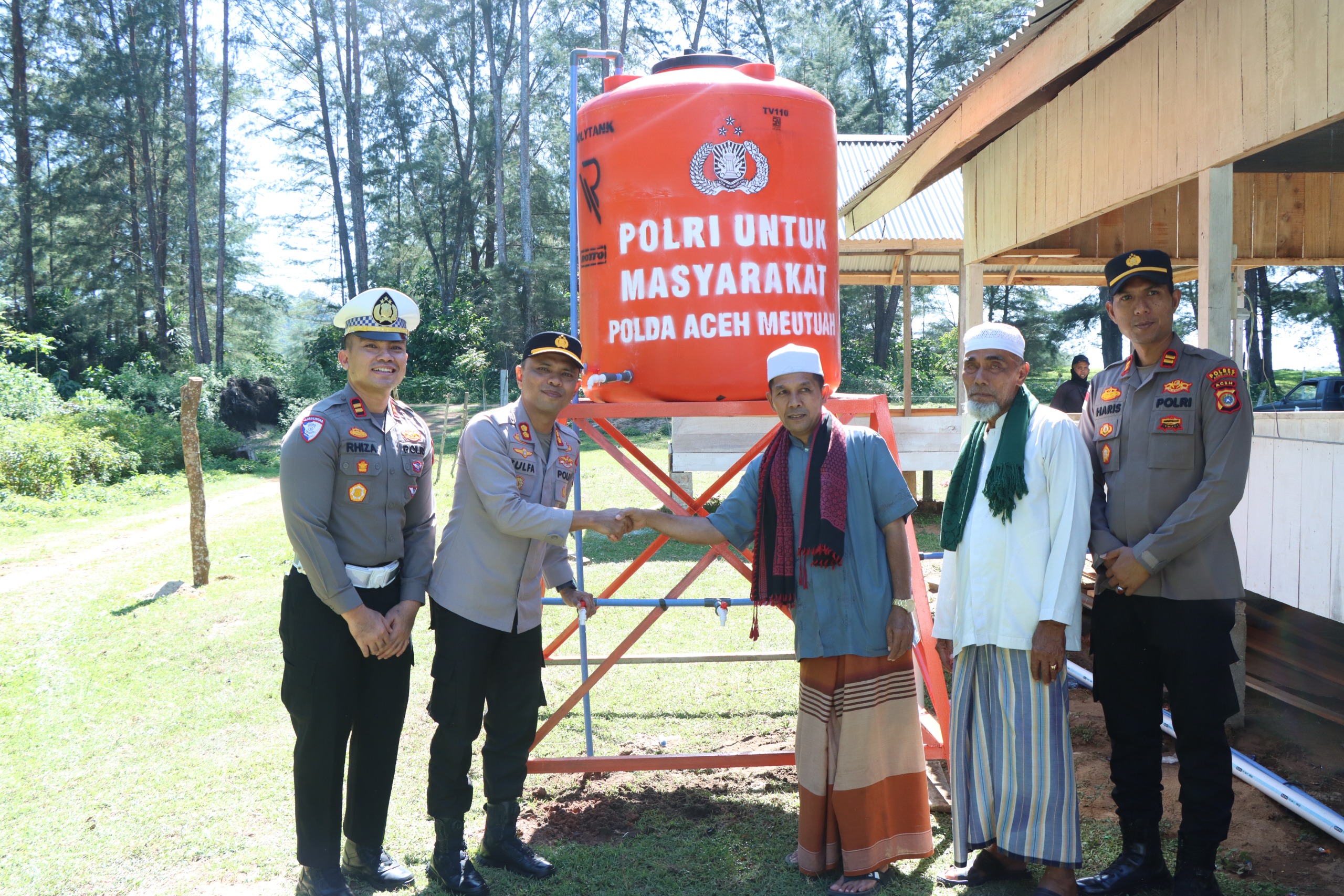 Kapolres Aceh Jaya AKBP Zulfa Renaldo, S.I.K., M.Si., menyampaikan bahwa pembangunan sumur bor ini merupakan bagian dari komitmen Polri untuk selalu hadir memberikan solusi atas kebutuhan masyarakat.