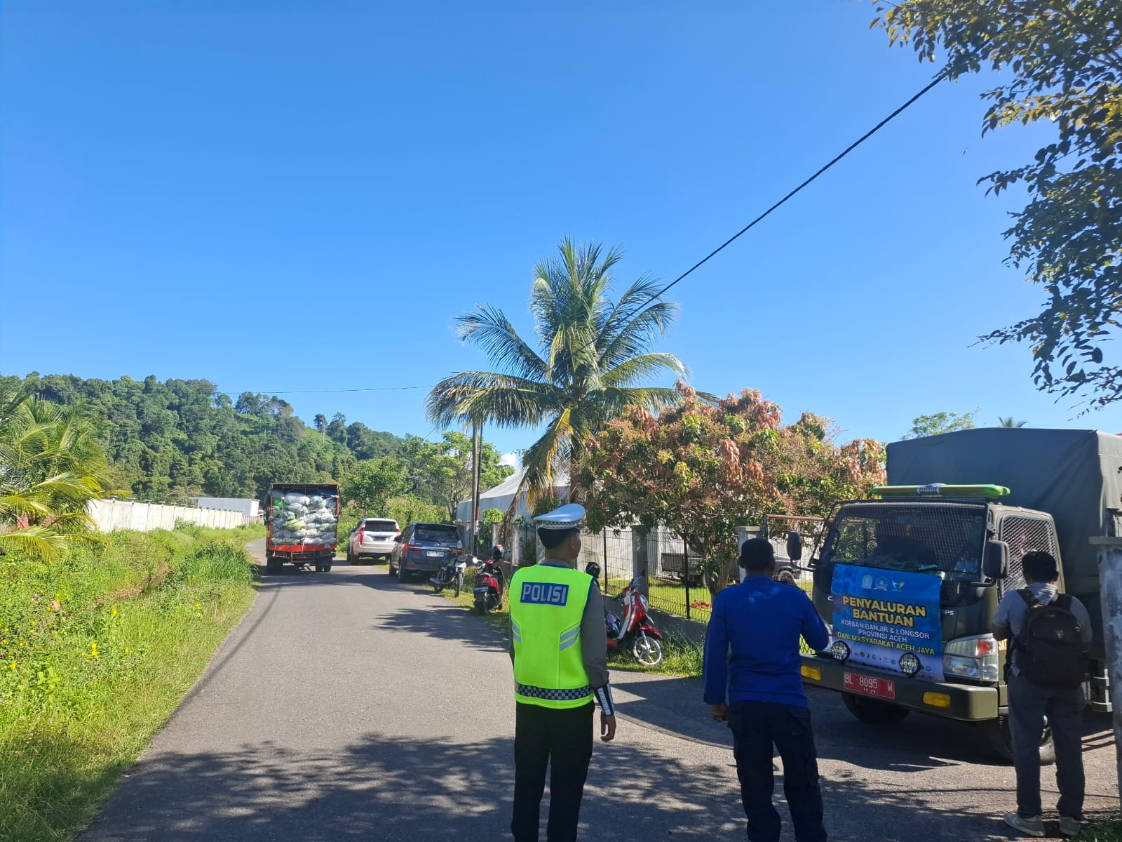 “Pengaturan lalu lintas ini dilakukan agar proses penyaluran bantuan berjalan lancar tanpa mengganggu aktivitas masyarakat pengguna jalan, serta untuk mengantisipasi potensi pelanggaran dan kecelakaan lalu lintas,” ujar Iptu rahamad Reza Pahlevi.