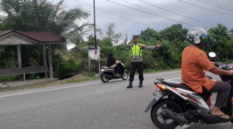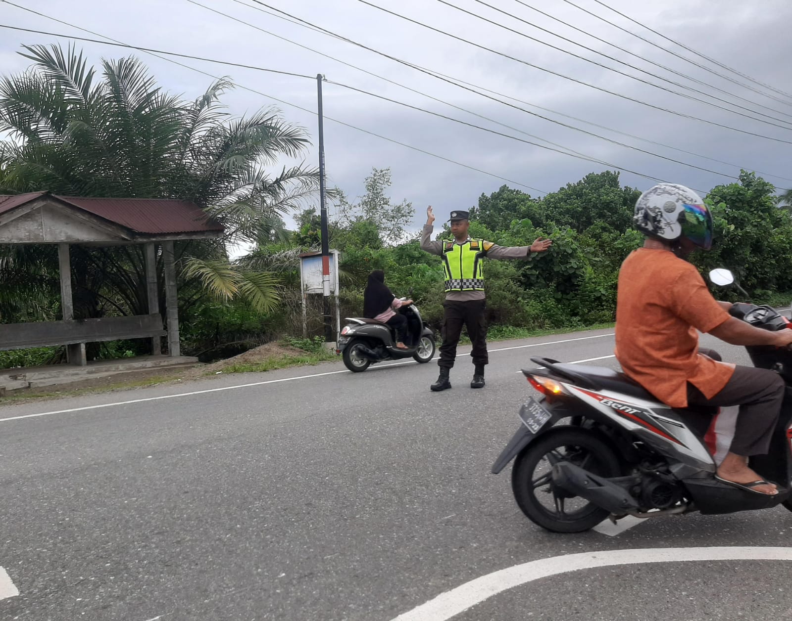 Polsek Teunom Gelar Strong Point Pagi, Pastikan Keselamatan Pelajar di Jalur Nasional