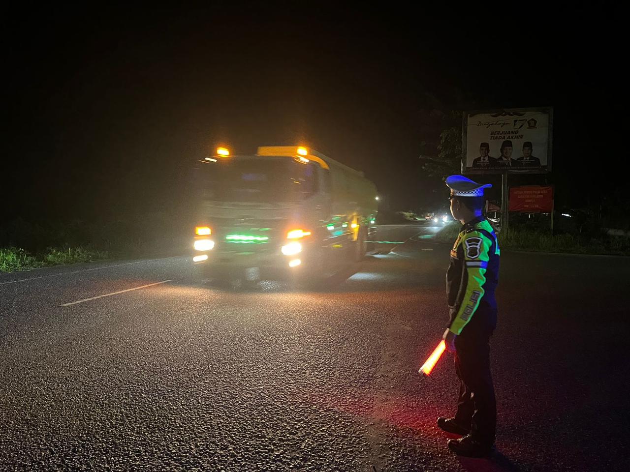 Sat Lantas Polres Aceh Jaya Lakukan Pengaturan Lalu Lintas Malam Hari, Antisipasi Laka Lantas di Jalur Nasional