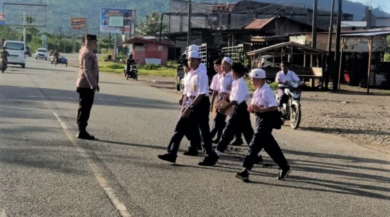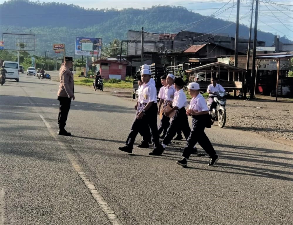 Personel Polsek Jaya Laksanakan Strong Point Pagi Hari, Berikan Rasa Aman bagi Pelajar dan Pengguna Jalan