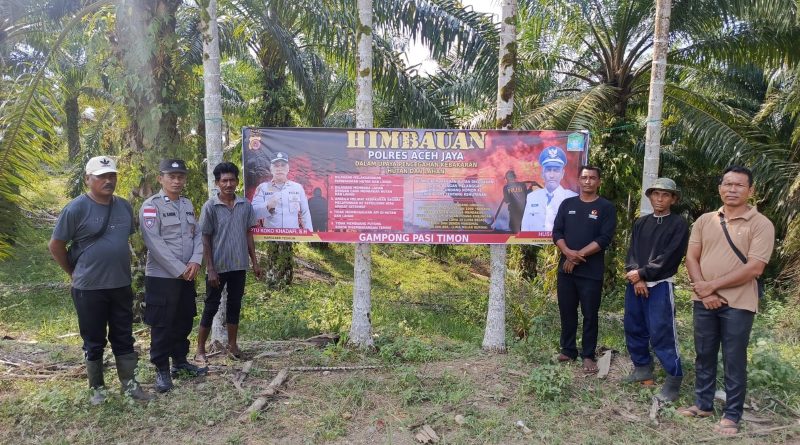Cegah Karhutla, Polsek Teunom Laksanakan Sosialisasi dan Pemasangan Spanduk Imbauan Stop Pembakaran Hutan dan Lahan