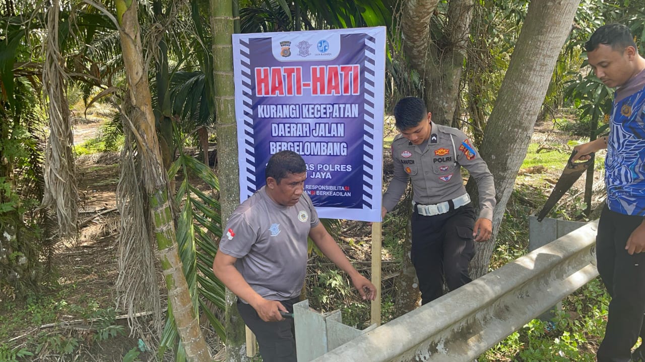 Ops Keselamatan Seulawah 2026, Unit Kamsel Satlantas Polres Aceh Jaya Pasang Spanduk Imbauan di Jalur Nasional