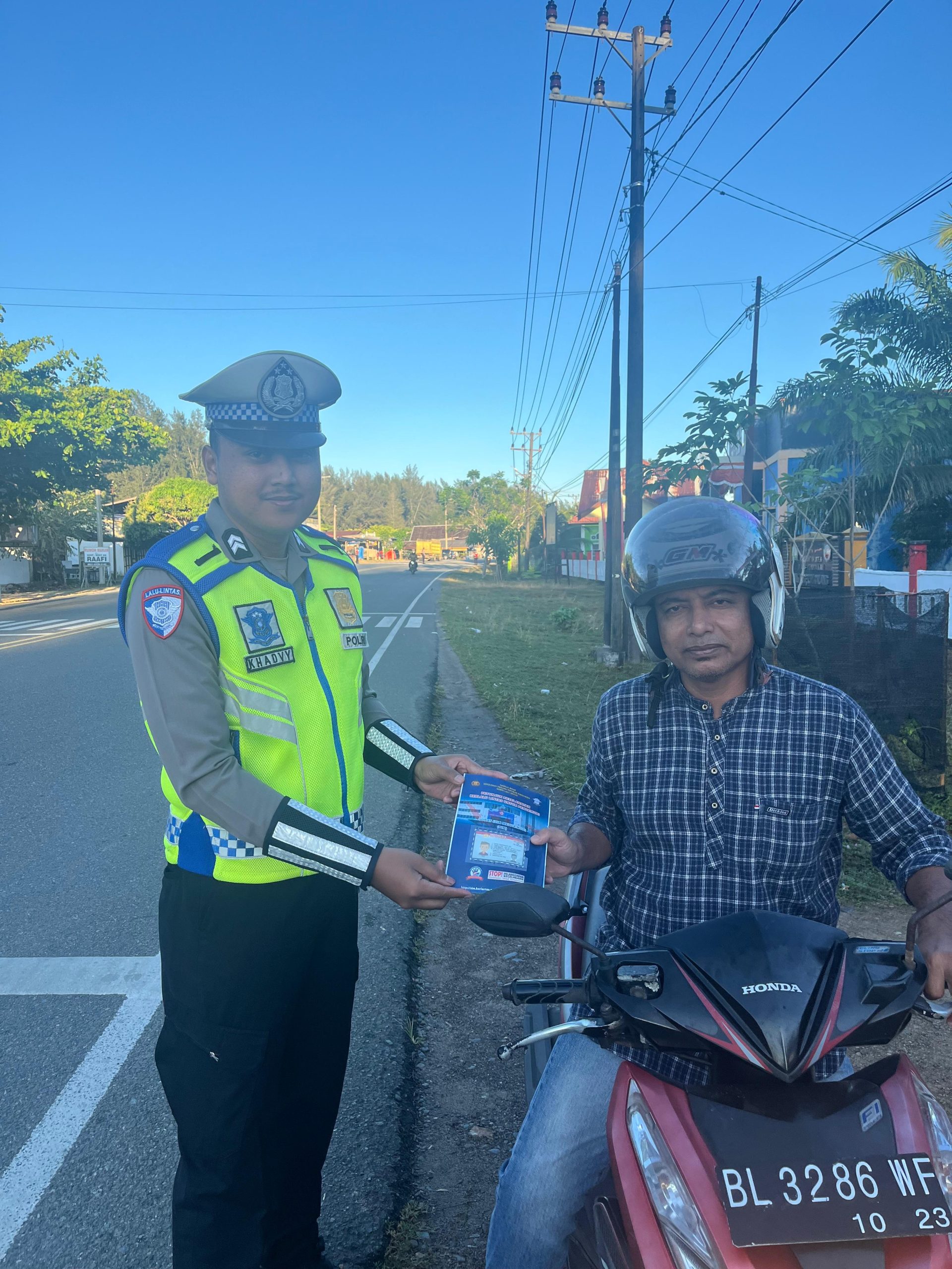 Satlantas Polres Aceh Jaya Bagikan Brosur Keselamatan Berlalu Lintas dalam Operasi Keselamatan Seulawah 2026
