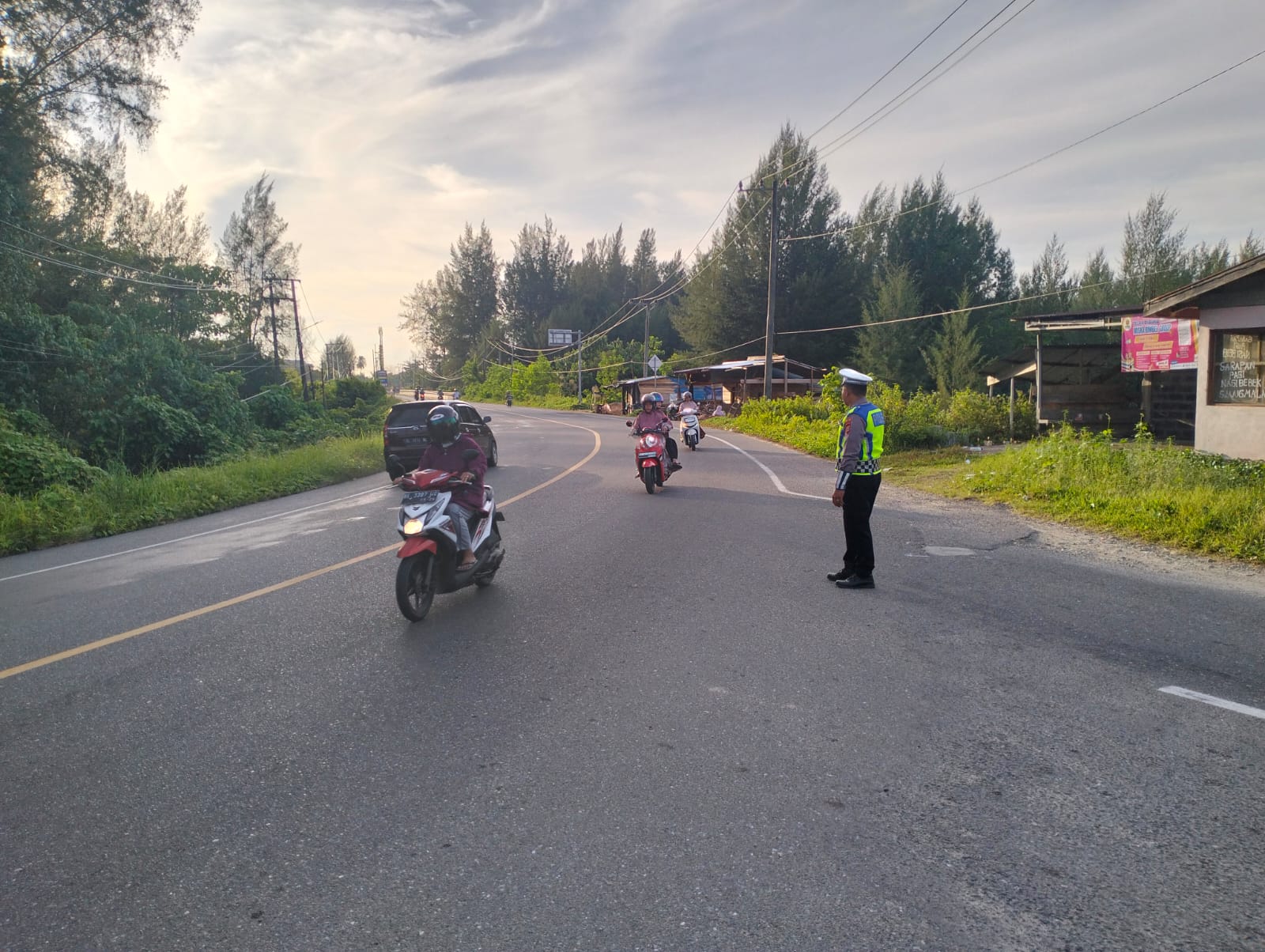 Dalam kegiatan tersebut, personel Satlantas melakukan pengaturan arus lalu lintas guna mengantisipasi kepadatan kendaraan pada jam sibuk pagi hari, khususnya saat masyarakat memulai aktivitas kerja, sekolah, dan kegiatan lainnya.