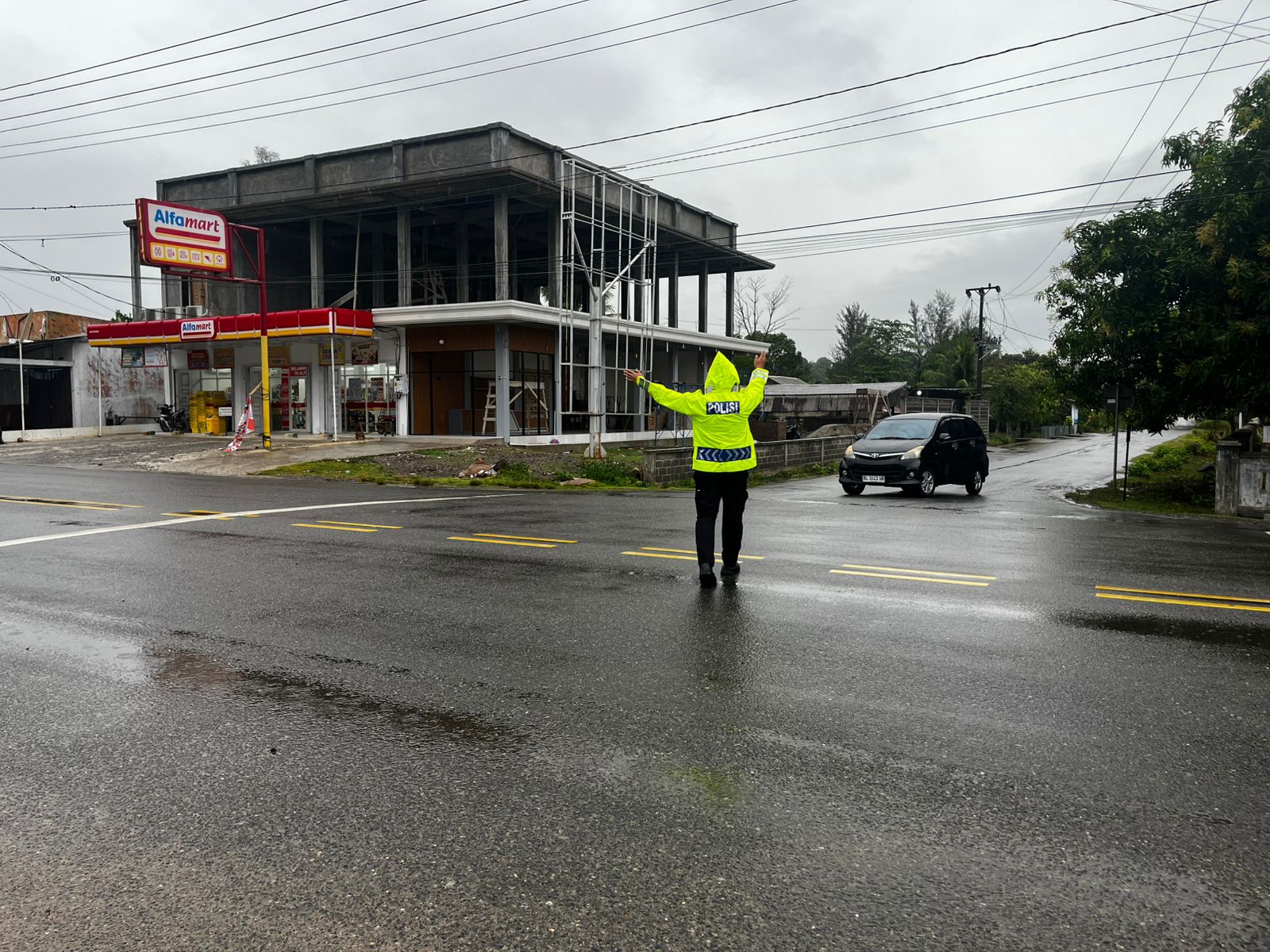Dengan mengenakan jas hujan dan perlengkapan dinas, para personel tetap sigap mengatur arus kendaraan yang meningkat pada pagi hari. Kehadiran mereka tak hanya memastikan kelancaran lalu lintas, tetapi juga memberikan rasa aman bagi para pengguna jalan yang beraktivitas di tengah cuaca kurang bersahabat.