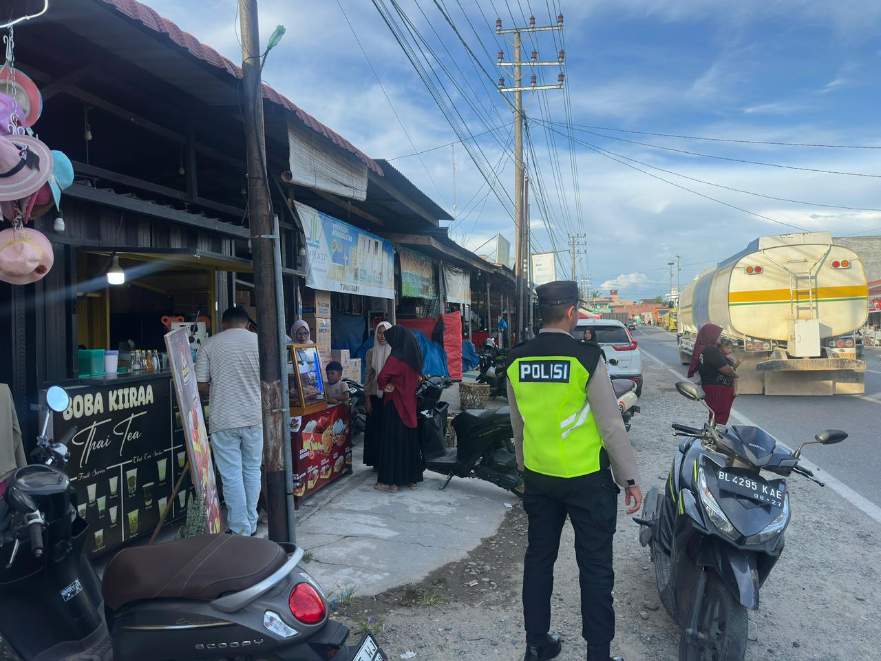 Kegiatan pengamanan ini dilakukan untuk memberikan rasa aman dan nyaman kepada masyarakat yang beraktivitas membeli makanan dan minuman untuk berbuka puasa di bulan suci Ramadhan.